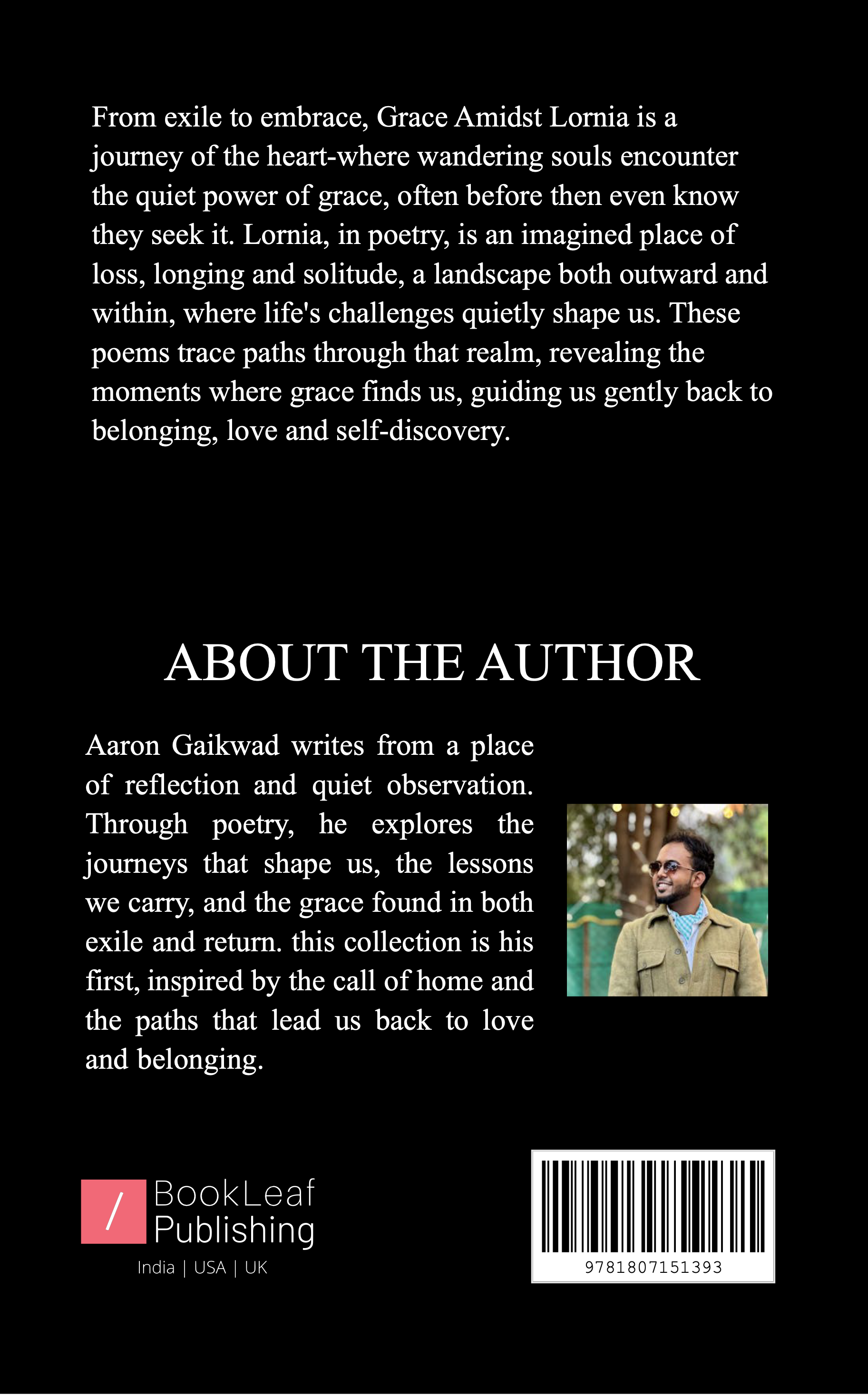 From exile to embrace, Grace Amidst Lornia is a poetic journey of the heart, where wandering souls encounter the quiet power of grace, often before they even know they seek it. Lornia, in poetry, is an imagined place of loss, longing, and solitude—a landscape both outward and within, where life’s challenges quietly shape us. These poems trace paths through that realm, revealing moments where grace finds us, guiding readers gently back to belonging, love, and self-discovery.