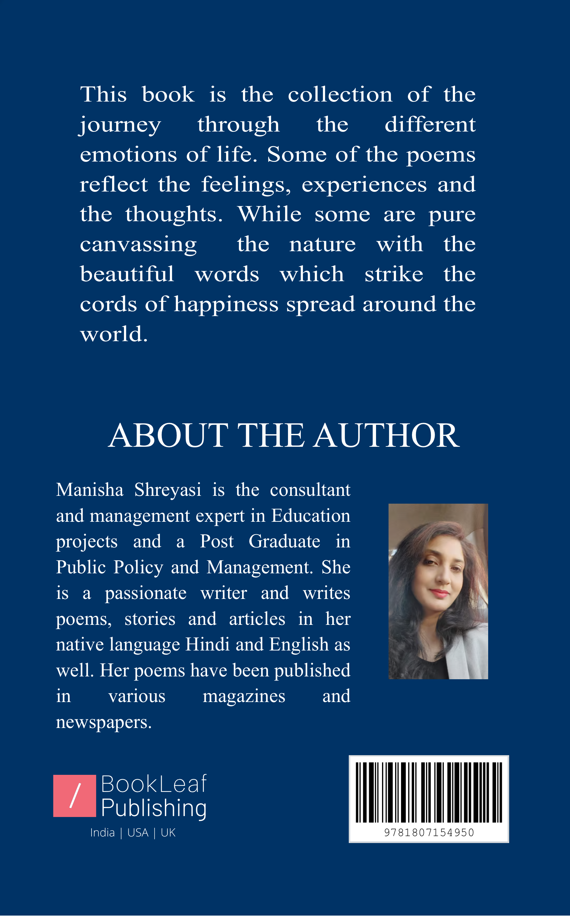 This book is the collection of the journey through the different emotions of life. Some of the poems reflect the feelings, experiences and the thoughts. While some are pure canvassing the nature with the beautiful words which strike the cords of happiness spread around the world.