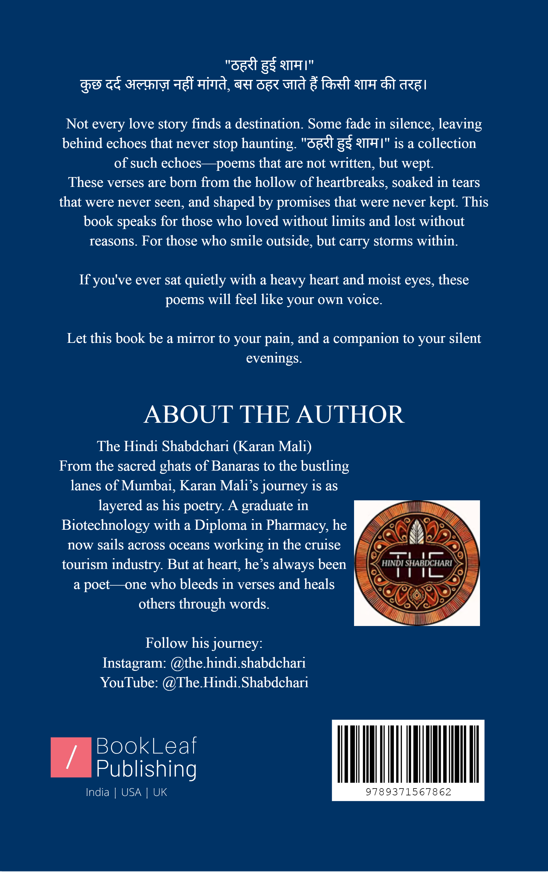 “ठहरी हुई शाम।” is a soul-stirring collection of Hindi poems born from heartbreak, silence, and unspoken pain. Each verse captures the quiet sorrow of love stories that never found closure—echoes of promises broken and tears never seen. Written for those who smile through storms and carry untold emotions, this book becomes a mirror to inner ache and a companion to lonely evenings. If you've ever felt the weight of unspoken grief or the silence after goodbye, these poems will feel like they were written just for you. Let this book speak the words your heart couldn't say.