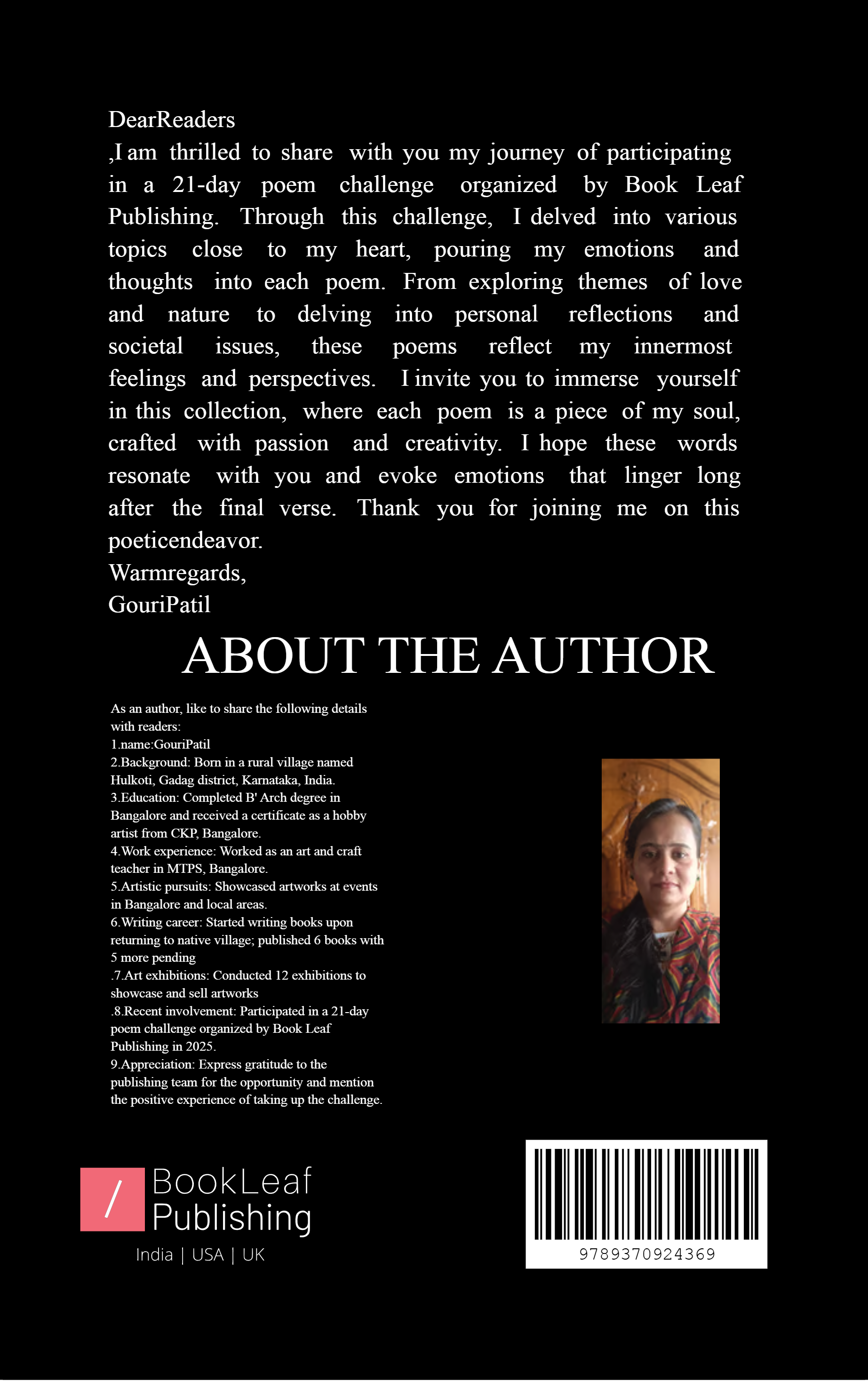 I am thrilled to share with you my journey of participating in a 21-day poem challenge organized by Book Leaf Publishing. Through this challenge, I delved into various topics close to my heart, pouring my emotions and thoughts into each poem. From exploring themes of love and nature to delving into personal reflections and societal issues, these poems reflect my innermost feelings and perspectives. I invite you to immerse yourself in this collection, where each poem is a piece of my soul, crafted with passion and creativity. I hope these words resonate with you and evoke emotions that linger long after the final verse. Thank you for joining me on this poetic endeavor.