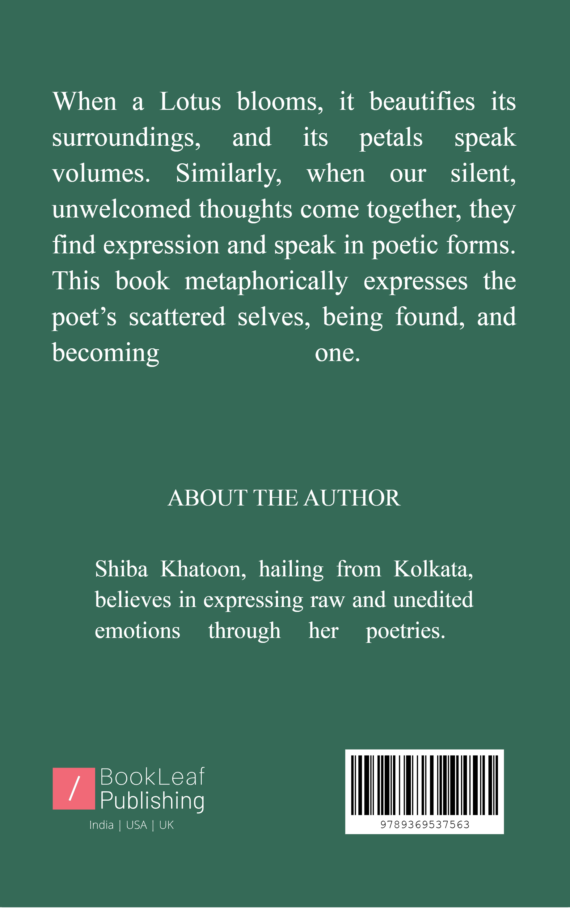 When a Lotus blooms, it beautifies its surroundings, and its petals speak volumes. Similarly, when our silent, unwelcomed thoughts come together, they find expression and speak in poetic forms. This book metaphorically expresses the poet’s scattered selves, being found, and becoming one.