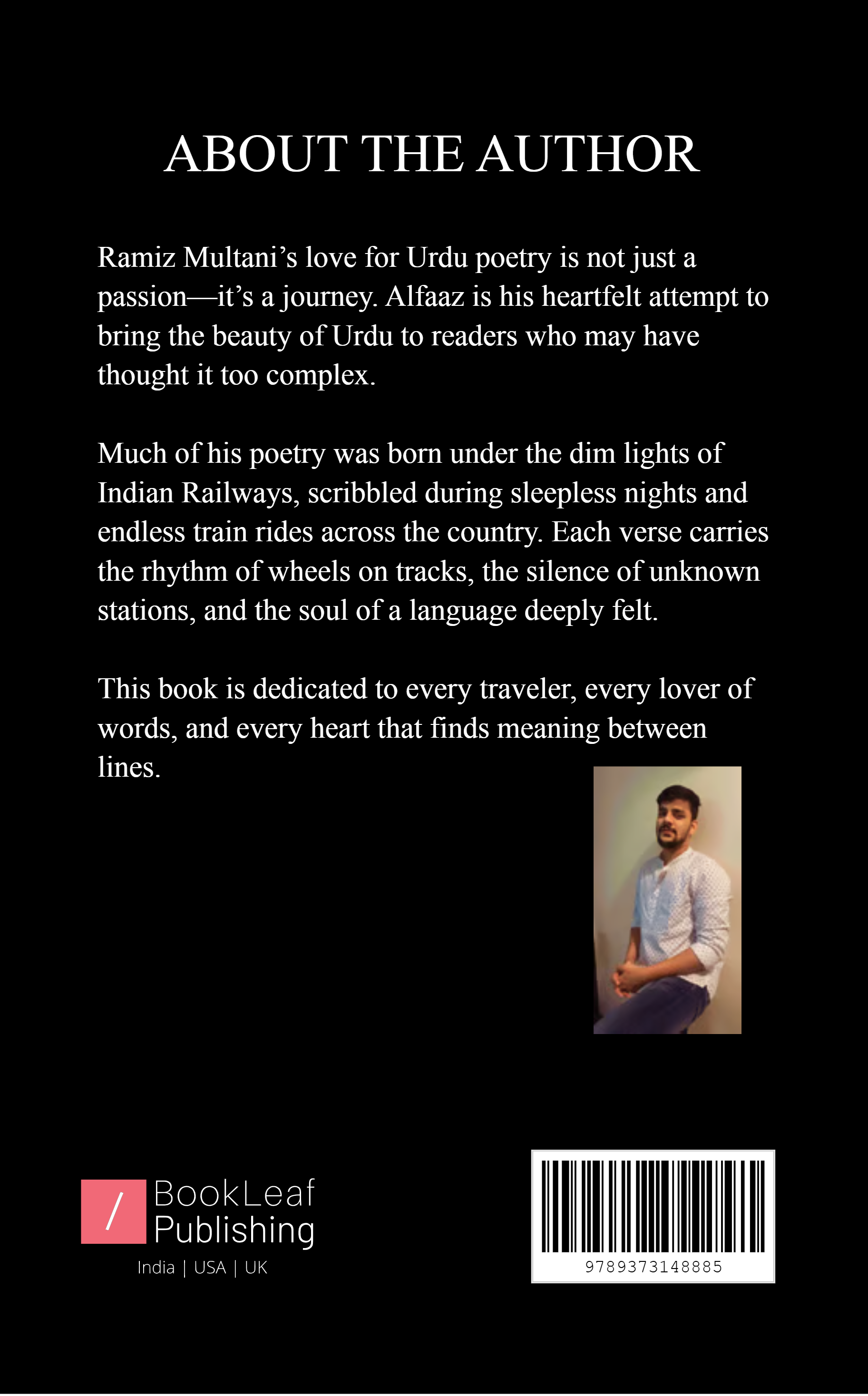 Alfaaz is his heartfelt attempt to bring the beauty of Urdu to readers who may have thought it too complex. Each verse carries the rhythm of wheels on tracks, the silence of unknown stations, and the soul of a language deeply felt. This book is dedicated to every traveler, every lover of words, and every heart that finds meaning between lines.