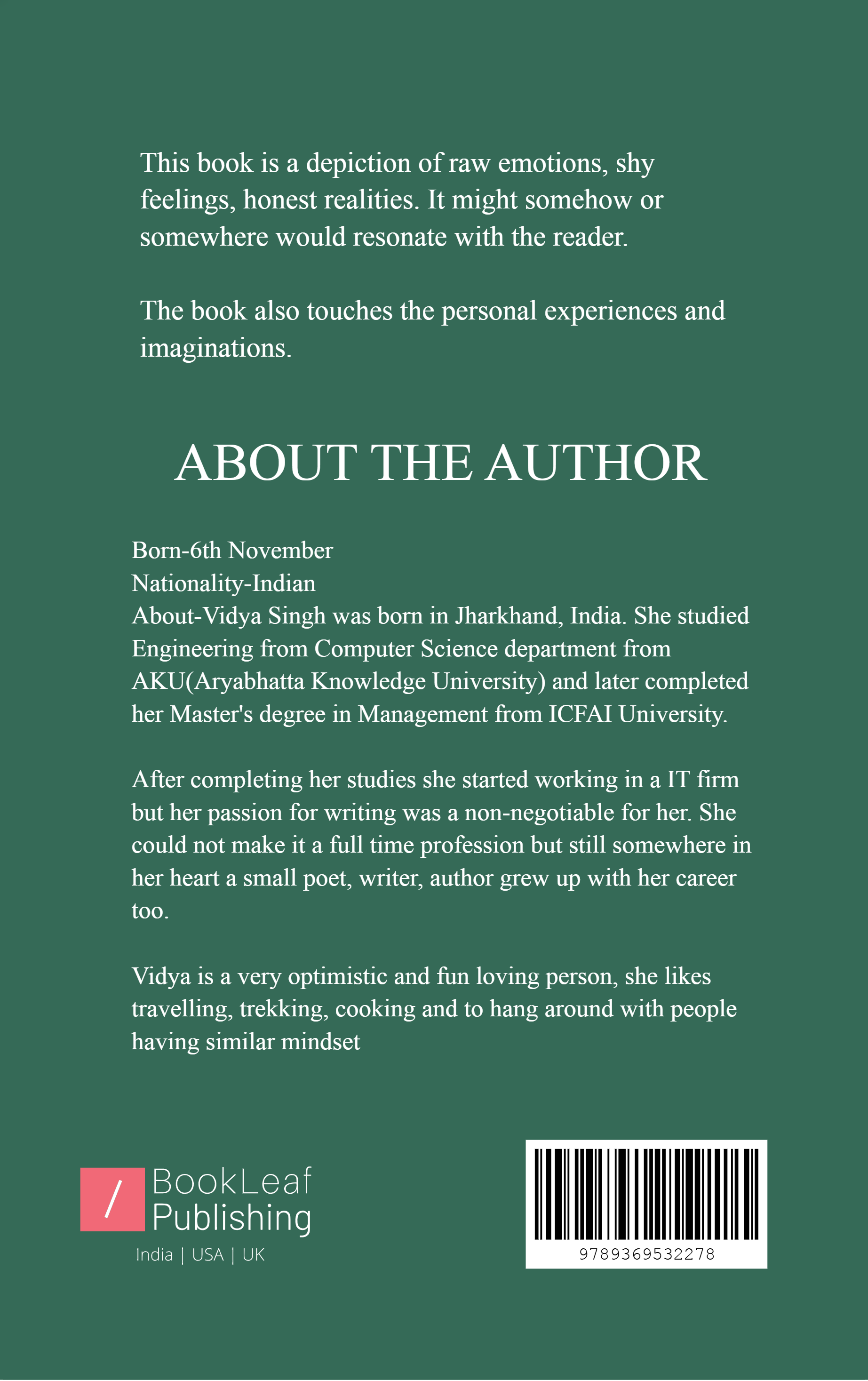 This book is a depiction of raw emotions, shy feelings, honest realities. It might somehow or somewhere would resonate with the reader.