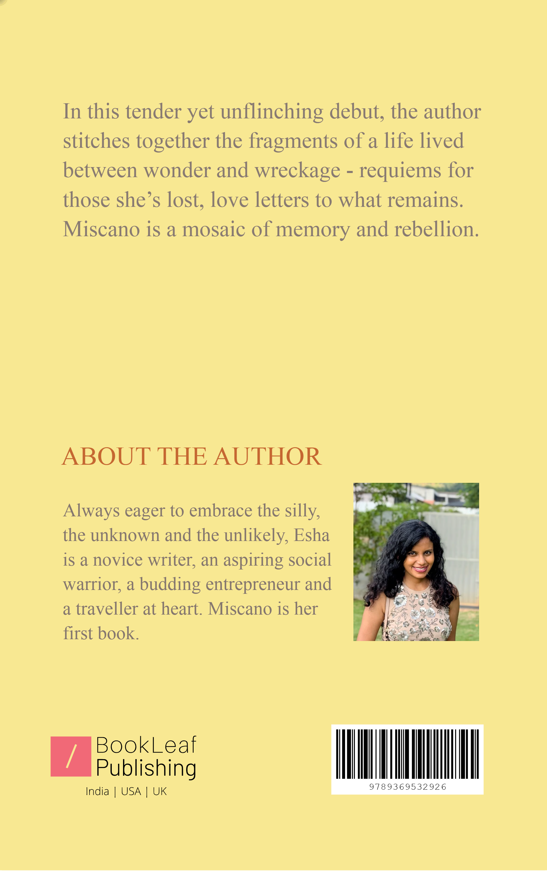 Miscano: Poems of Love & Leftovers is a luminous debut that stitches together fragments of memory, defiance, and tenderness. With equal parts fire and quiet, Esha crafts verses that linger. For anyone who’s ever held joy and grief in the same hands, Miscano is a mosaic of all we keep, lose, and refuse to release.