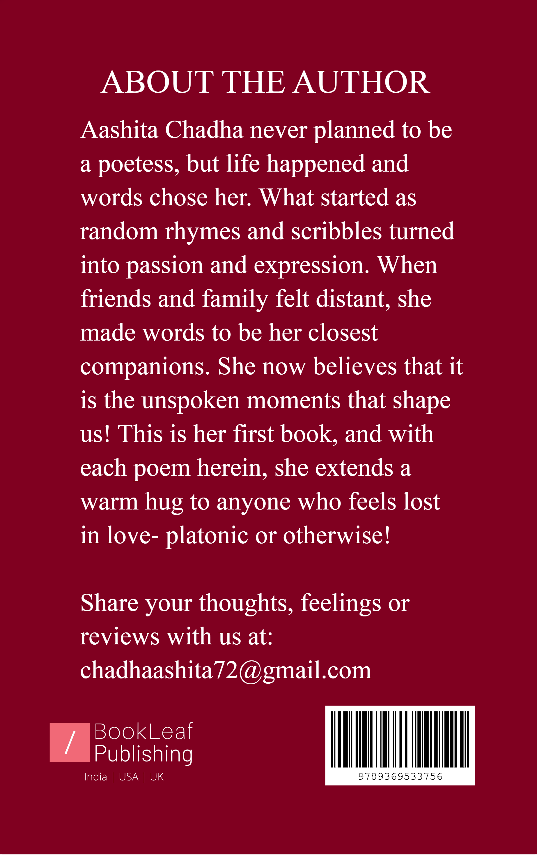 Love is beautiful yet complicated.  It can lift you to the skies, only to leave you falling back to earth with a crash. This collection is a tribute to those who have loved and lost, to the hearts that have been shattered, yet dare to beat, to those who have found solace in the quiet moments after the storm and to those who barely live past. To anyone who has ever loved deeply, only to have that love slip through their fingers, this book is for you.