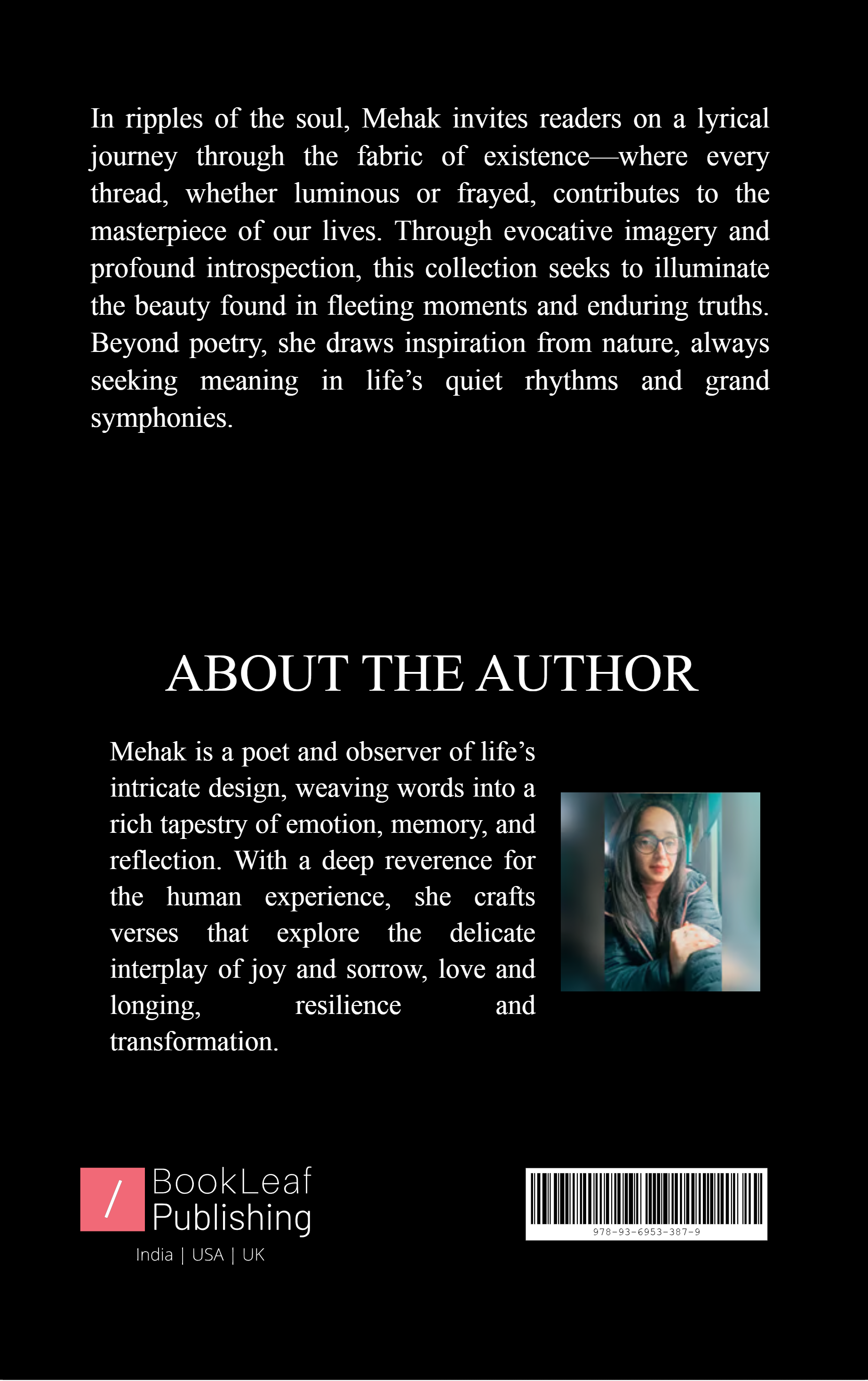Ripples of the soul invites readers on a lyrical journey through the fabric of existence—where every thread, whether luminous or frayed, contributes to the masterpiece of our lives. Through evocative imagery and profound introspection, this collection seeks to illuminate the beauty found in fleeting moments and enduring truths.