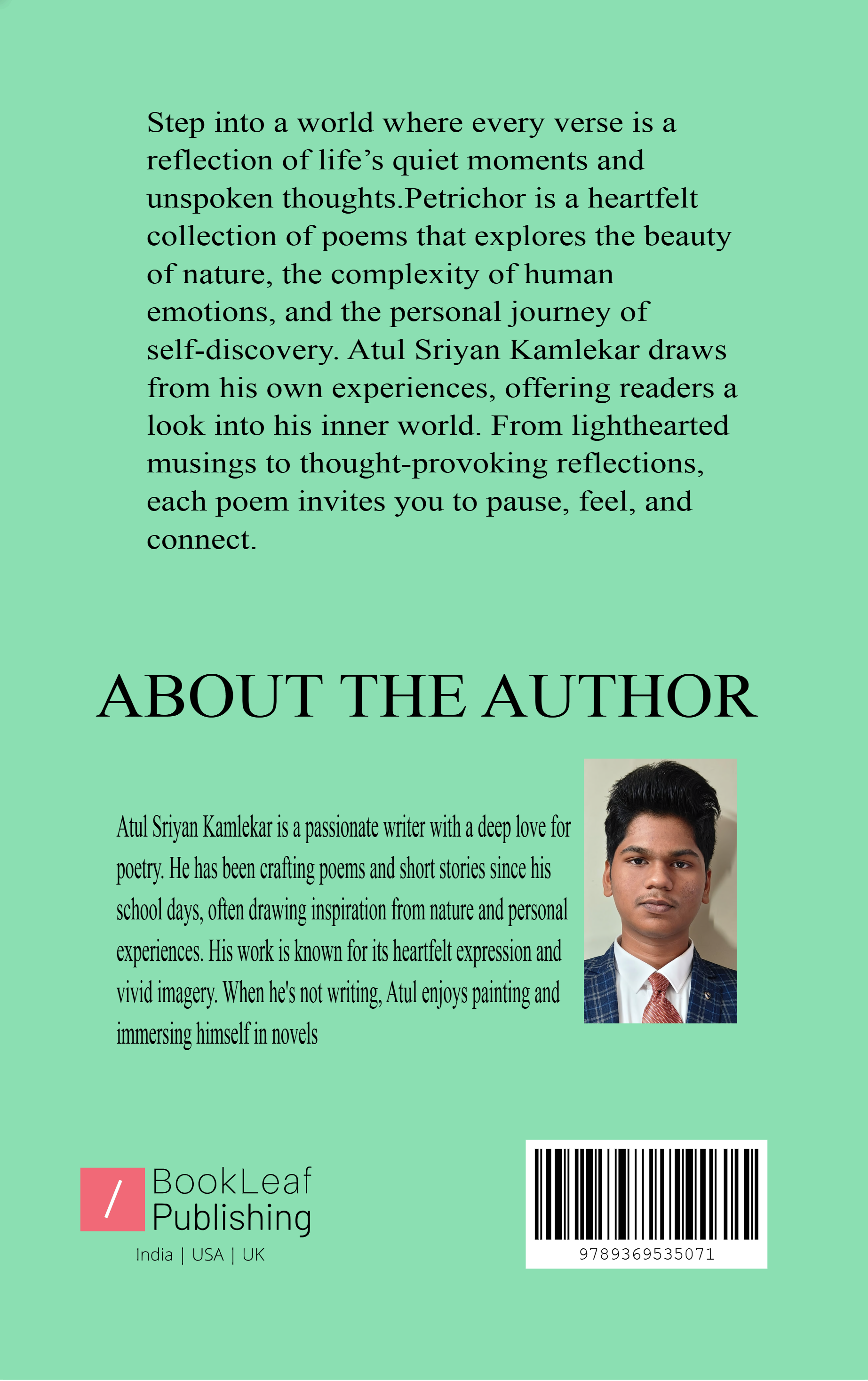 This book is a heartfelt collection of poems by Atul Sriyan Kamlekar, drawn from his personal thoughts, reflections, and experiences. Each poem offers a glimpse into the author's unique perspective on life. While some pieces are lighthearted and playful, others carry deeper messages meant to inspire, provoke thought, or simply connect with the reader on a personal level.