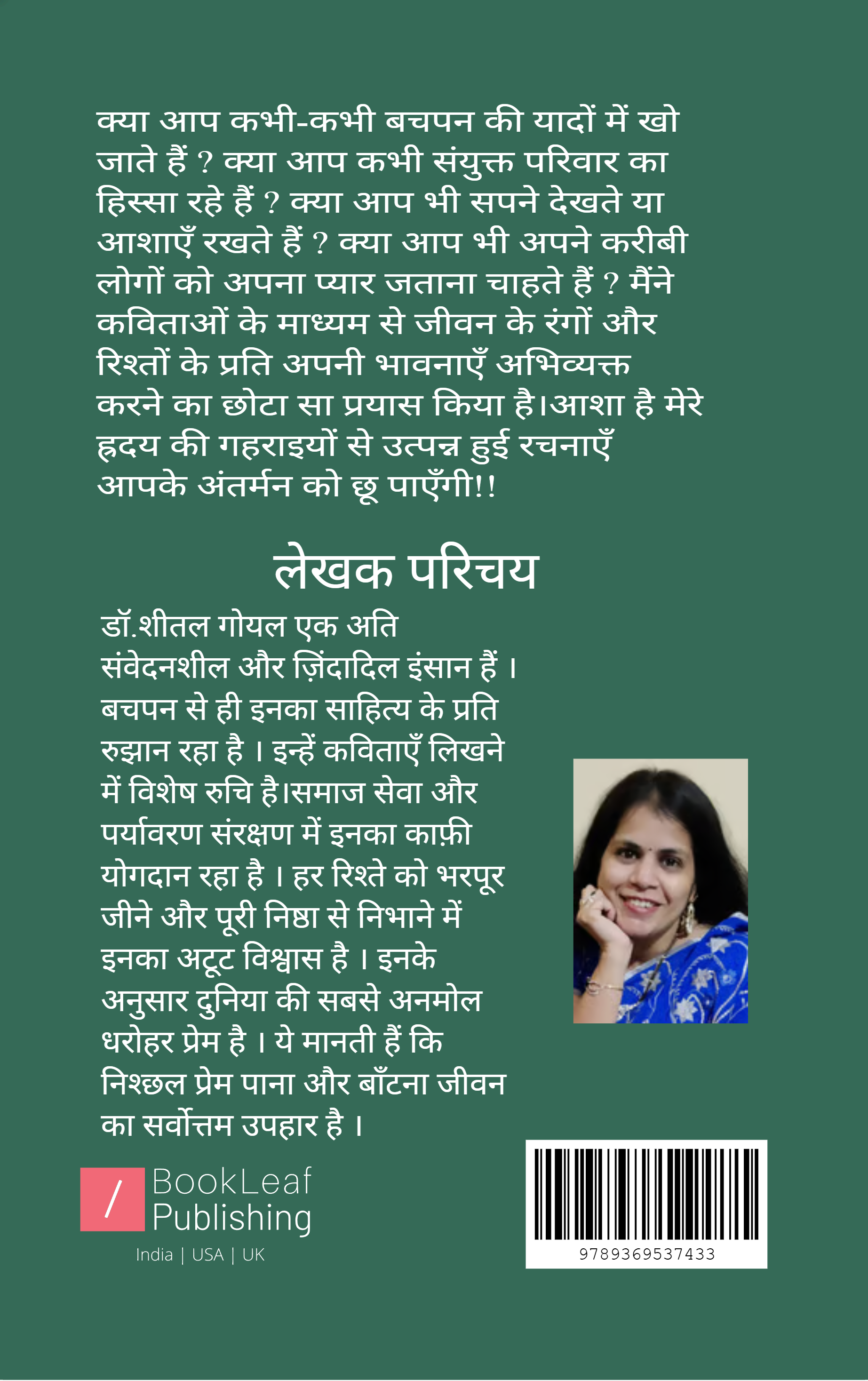 क्या आप कभी-कभी बचपन की यादों में खो जाते हैं ? क्या आप कभी संयुक्त परिवार का हिस्सा रहे हैं ? क्या आप भी सपने देखते या आशाएँ रखते हैं ? क्या आप भी अपने करीबी लोगों को अपना प्यार जताना चाहते हैं ? मैंने कविताओं के माध्यम से जीवन के रंगों और रिश्तों के प्रति अपनी भावनाएँ अभिव्यक्त करने का छोटा सा प्रयास किया है।आशा है मेरे ह्रदय की गहराइयों से उत्पन्न हुई रचनाएँ आपके अंतर्मन को छू पाएँगी!!