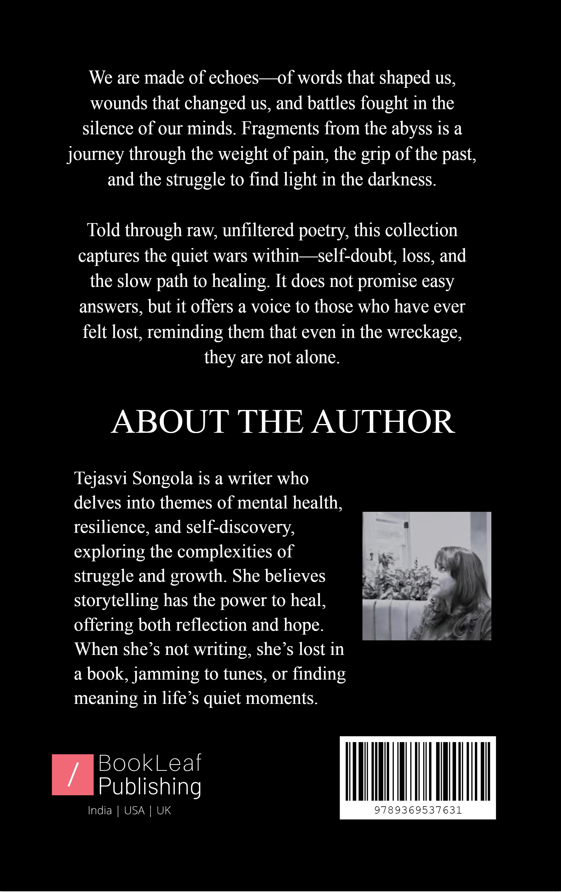 Fragments from the Abyss is a collection of poetry that delves into the depths of the mind—where doubt lingers, pain echoes, and resilience quietly takes root. Each poem captures the weight of unspoken struggles, the turmoil of self-doubt, and the slow journey toward healing. This book does not shy away from darkness but seeks to understand it, making space for hope amid the wreckage. A raw and introspective reflection on the human experience, it is for anyone who has ever felt lost yet longed to be found.