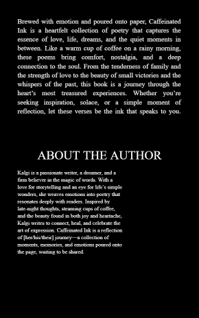 Brewed with emotion and poured onto paper, Caffeinated Ink is a heartfelt collection of poetry that captures the essence of love, life, dreams, and the quiet moments in between. Like a warm cup of coffee on a rainy morning, these poems bring comfort, nostalgia, and a deep connection to the soul. From the tenderness of family and the strength of love to the beauty of small victories and the whispers of the past, this book is a journey through the heart’s most treasured experiences. Whether you’re seeking inspiration, solace, or a simple moment of reflection, let these verses be the ink that speaks to you.