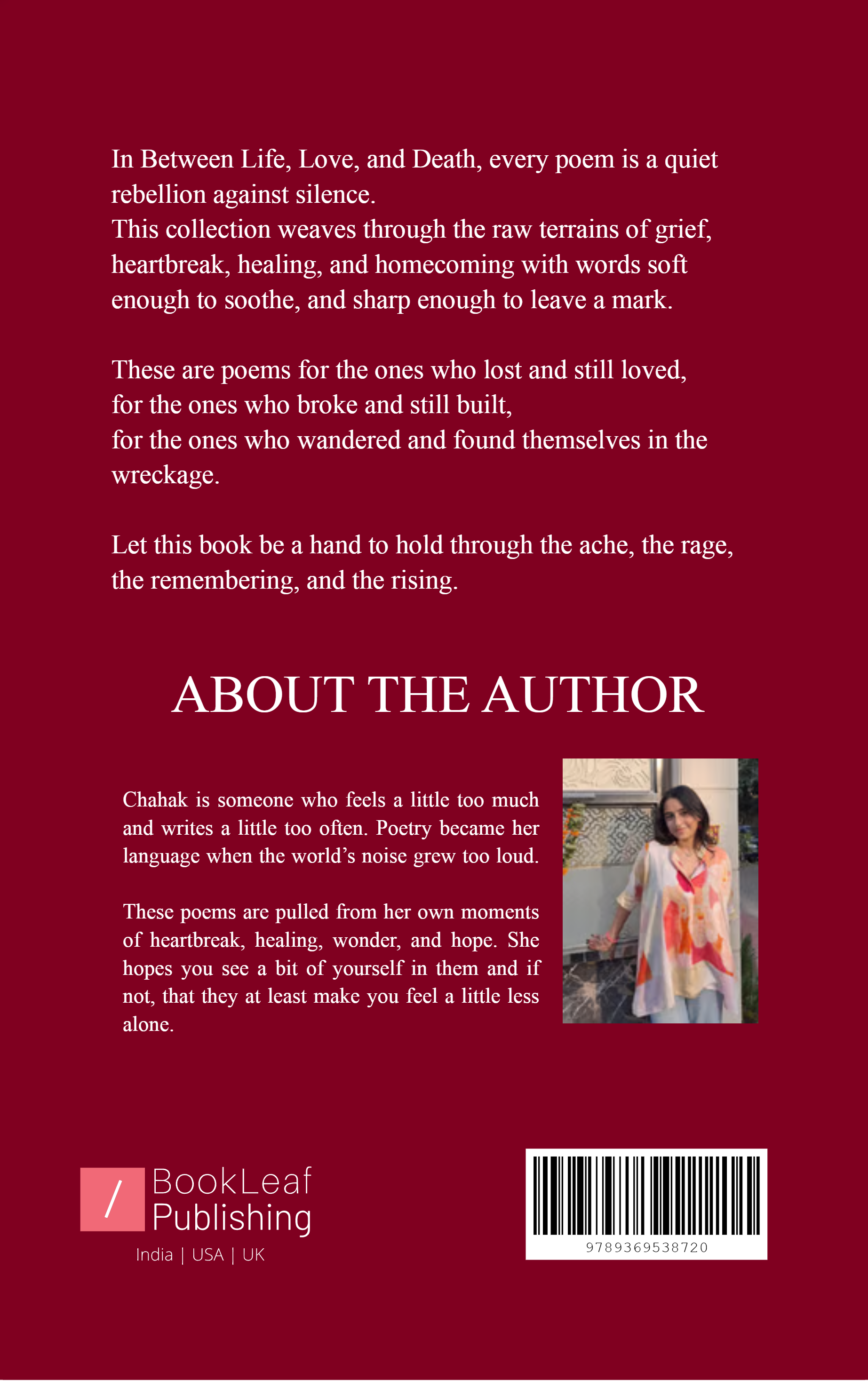 Between Life, Love, and Death is a raw and intimate collection of poetry that explores the quiet corners of the human heart. From the ache of grief to the warmth of healing, each poem walks through moments we often leave unspoken like childhood wounds, fragile love, family ties, and the long road to self-acceptance. With language both tender and fierce, this debut invites readers to sit with their own stories, to find comfort in chaos, and to remember that even in the darkest places, there is beauty and there is light.