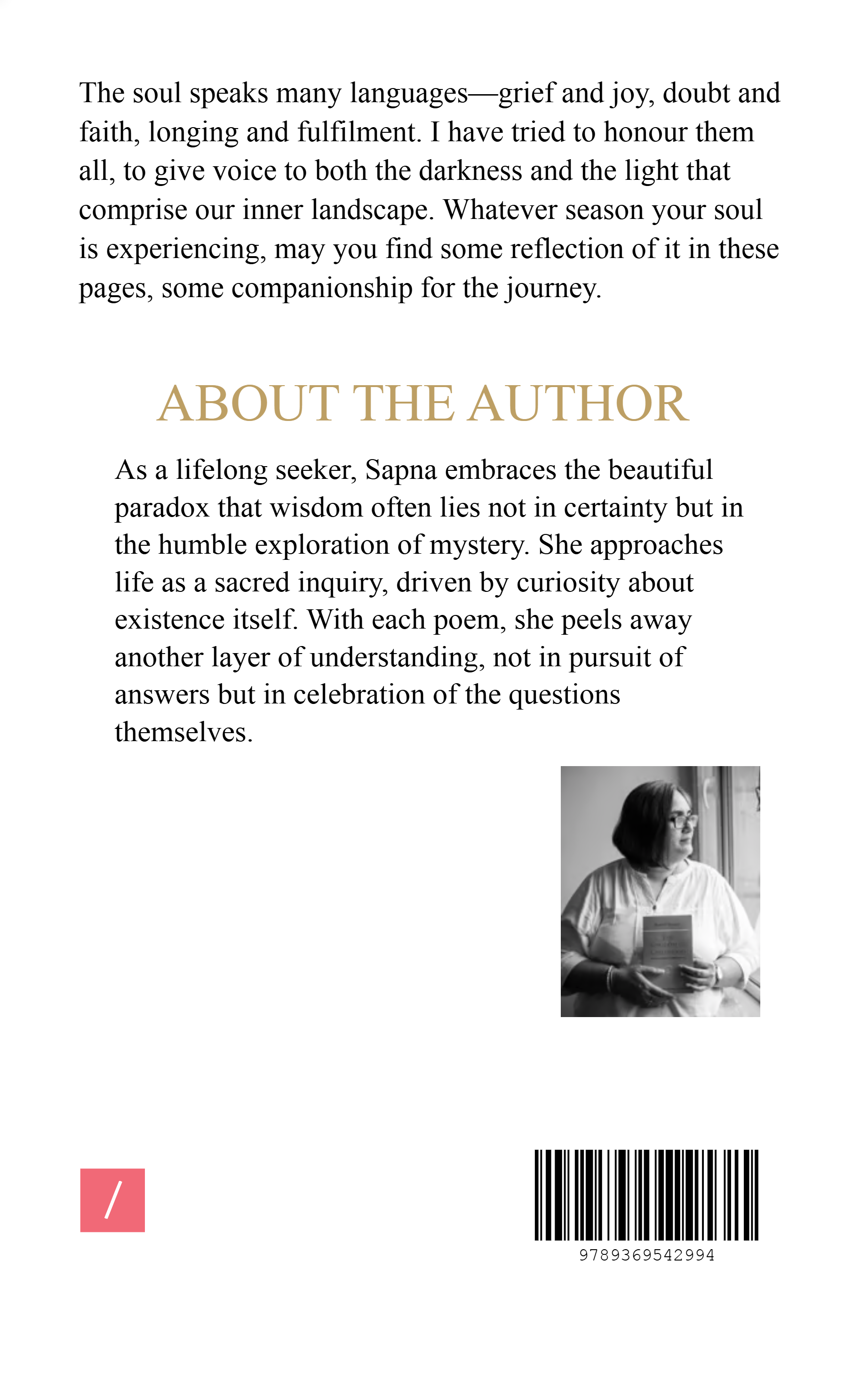 The soul speaks many languages—grief and joy, doubt and faith, longing and fulfilment. I have tried to honour them all, to give voice to both the darkness and the light that comprise our inner landscape. Whatever season your soul is experiencing, may you find some reflection of it in these pages, some companionship for the journey. These poems echo with the voices of those who have walked alongside me.