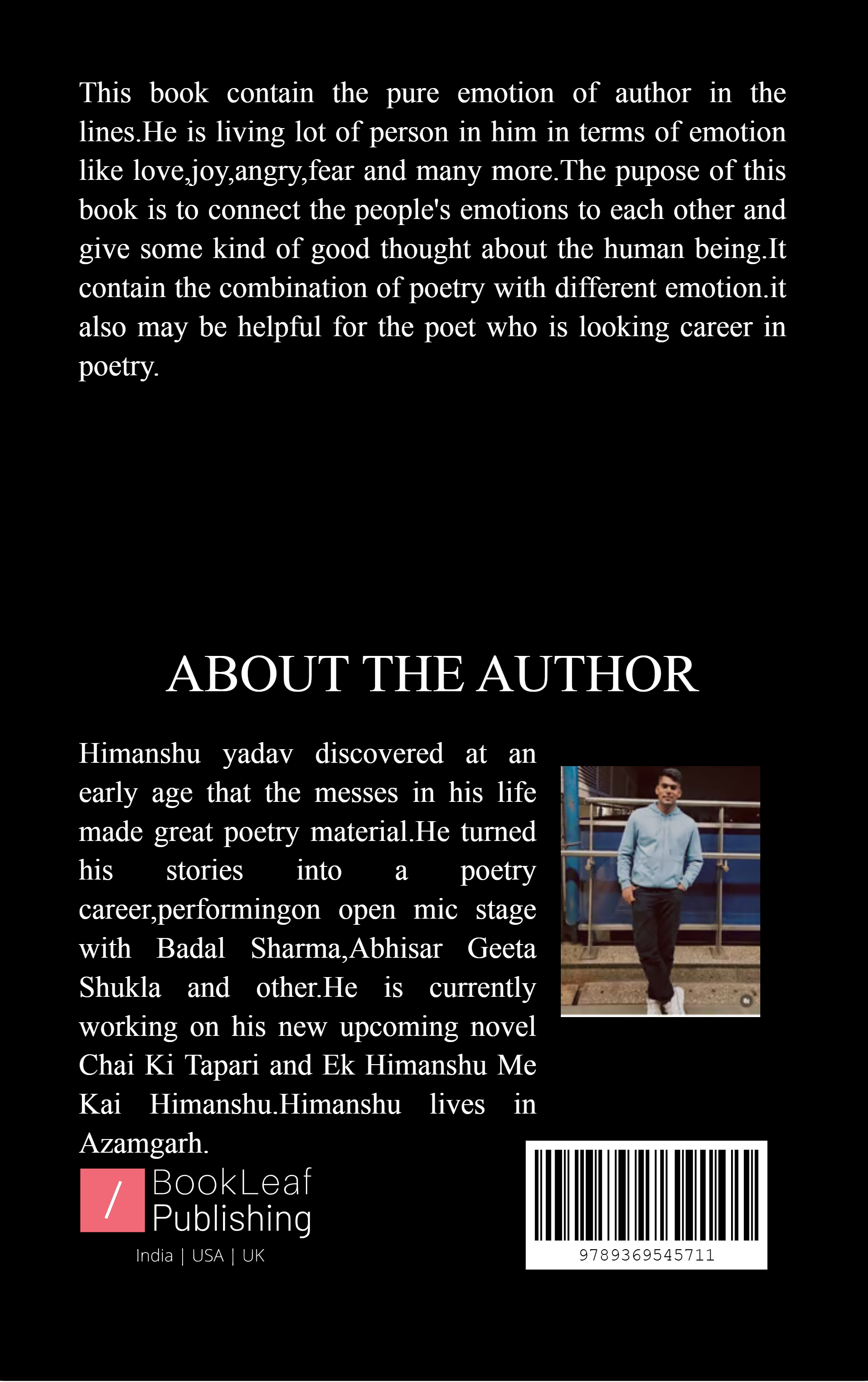 This book is the collection of total twenty two poetry and have the diverse emotion in it.It has contain the emotion of love, anger, pride, joy ,respect and many more.The purpose of this book is to connect the different people in one place and this book may also helpful for those people who is looking career in poetry as a writer.
