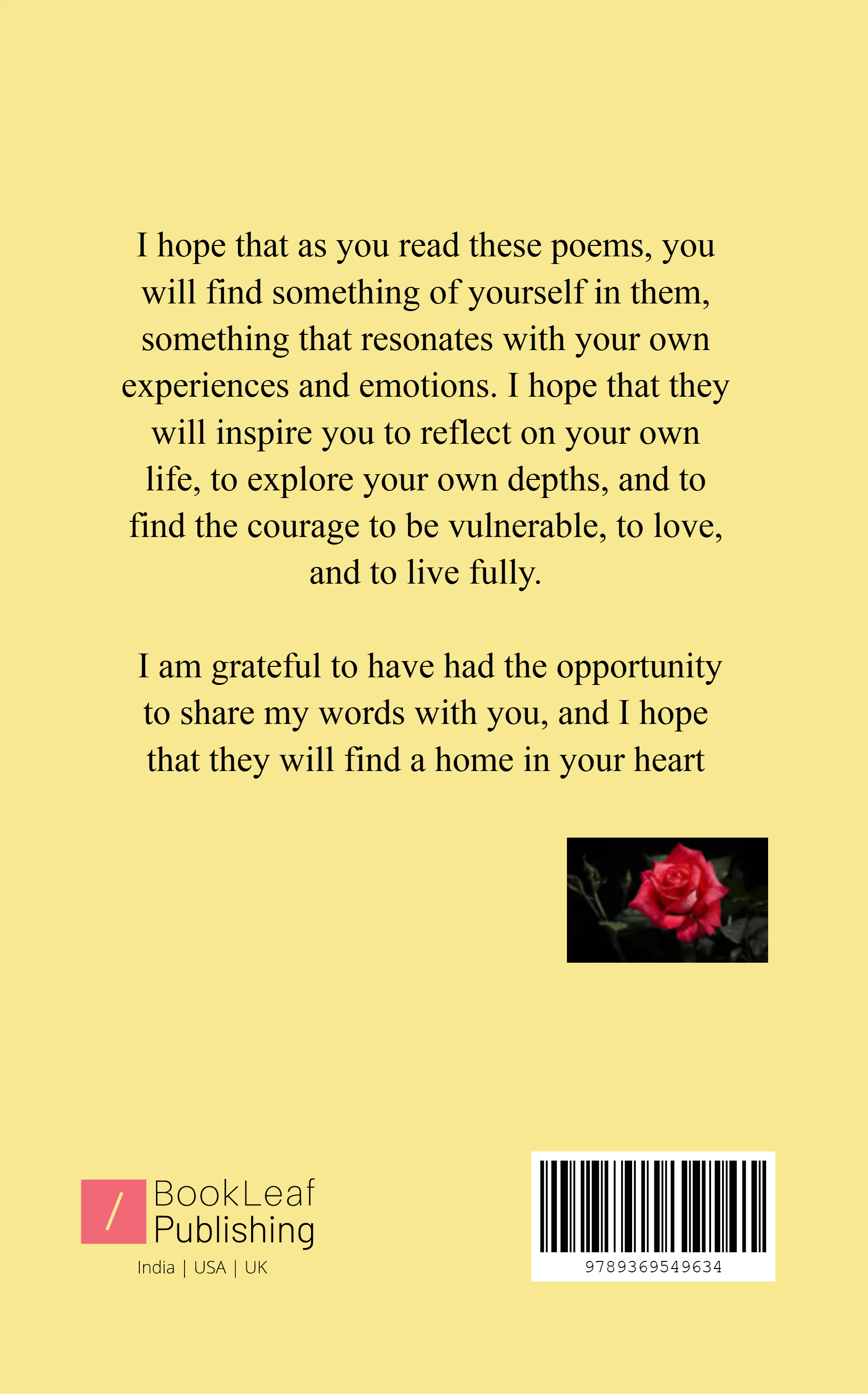 This debut poetry collection  is a deeply personal and emotional journey that explores the complexities of life, love, and loss. These short poems are a reflection the author's own experiences, observations, and emotions, put down on paper.