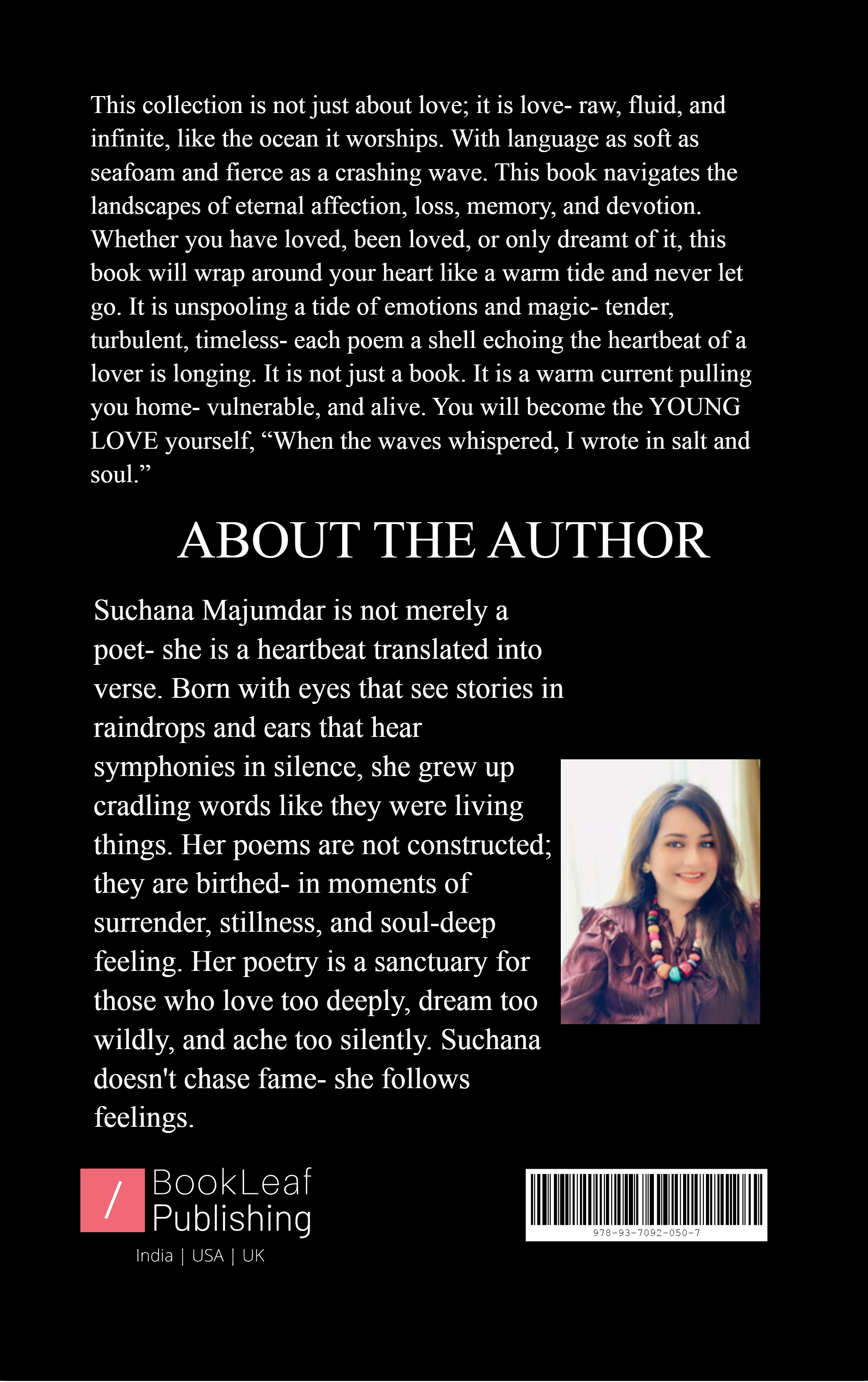 It is a soul-stirring collection of love poems by Suchana Majumdar, written as an intimate tribute to her eternal muse- the Ocean. Each poem flows with tenderness, longing, and unspoken devotion, capturing the timeless rhythm of a heart that beats for something vast, distant, yet deeply personal. Through waves of metaphor and tides of emotion, Suchana turns her love story into a lyrical sanctuary where readers can feel seen, softened, and swept away. This is not just poetry—it’s a confession, a prayer, and a surrender wrapped in the language of water and wonder.