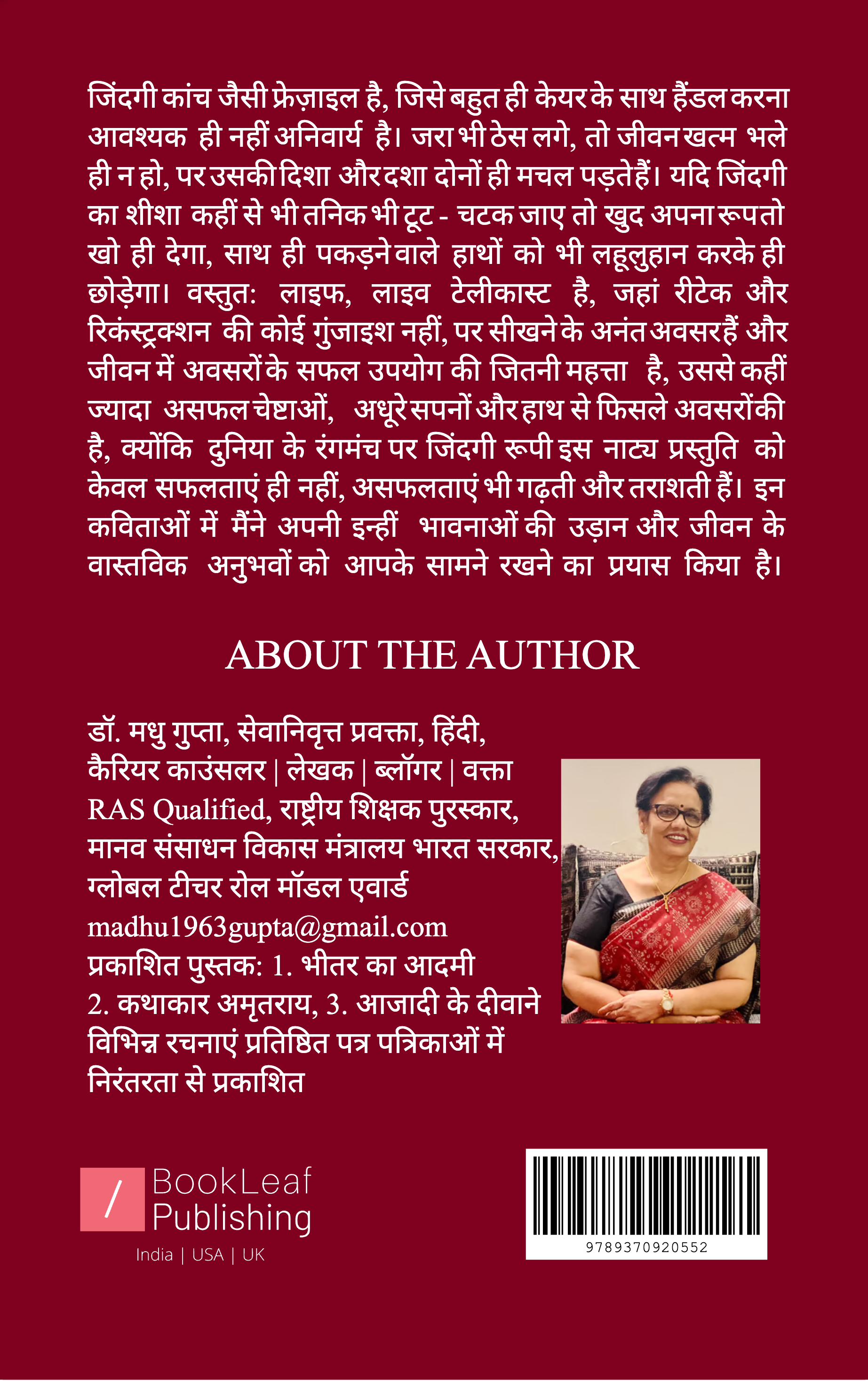 ज़िंदगी कांच की तरह नाज़ुक है, जिसे बहुत सावधानी से संभालना ज़रूरी है। थोड़ी सी ठेस से जीवन की दिशा बदल सकती है। अगर ज़िंदगी का शीशा टूट जाए, तो खुद अपना रूप खो देता है और पकड़ने वाले को भी चोट पहुँचाता है। जीवन एक लाइव टेलीकास्ट है, जहाँ रीटेक नहीं होता, लेकिन सीखने के अवसर अनगिनत हैं। सफलताओं से ज्यादा असफल प्रयास, अधूरे सपने और छूटे हुए मौके ज़िंदगी को आकार देते हैं। डॉ. मधु गुप्ता द्वारा रचित "लाइफ - हैंडल विद केयर" की कविताओं में इन भावनाओं और अनुभवों को व्यक्त किया है, जहाँ ‘क्या’ से ज्यादा ‘क्यों’ और ‘कैसे’ मायने रखते हैं।