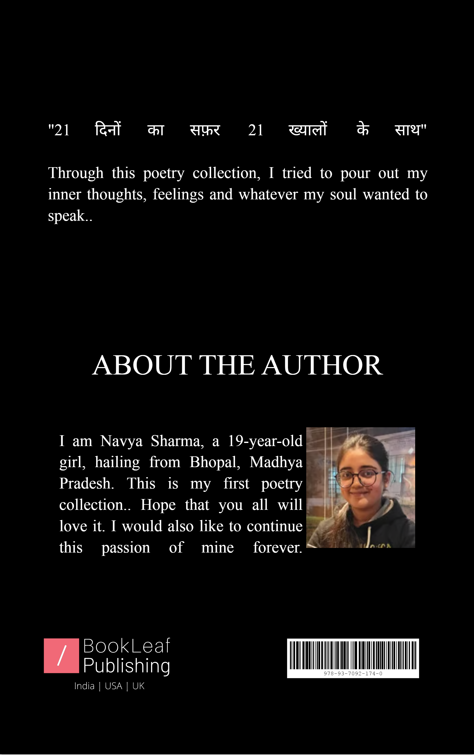 Through this poetry collection, I tried to pour out my inner thoughts, feelings and whatever my soul wanted to speak.