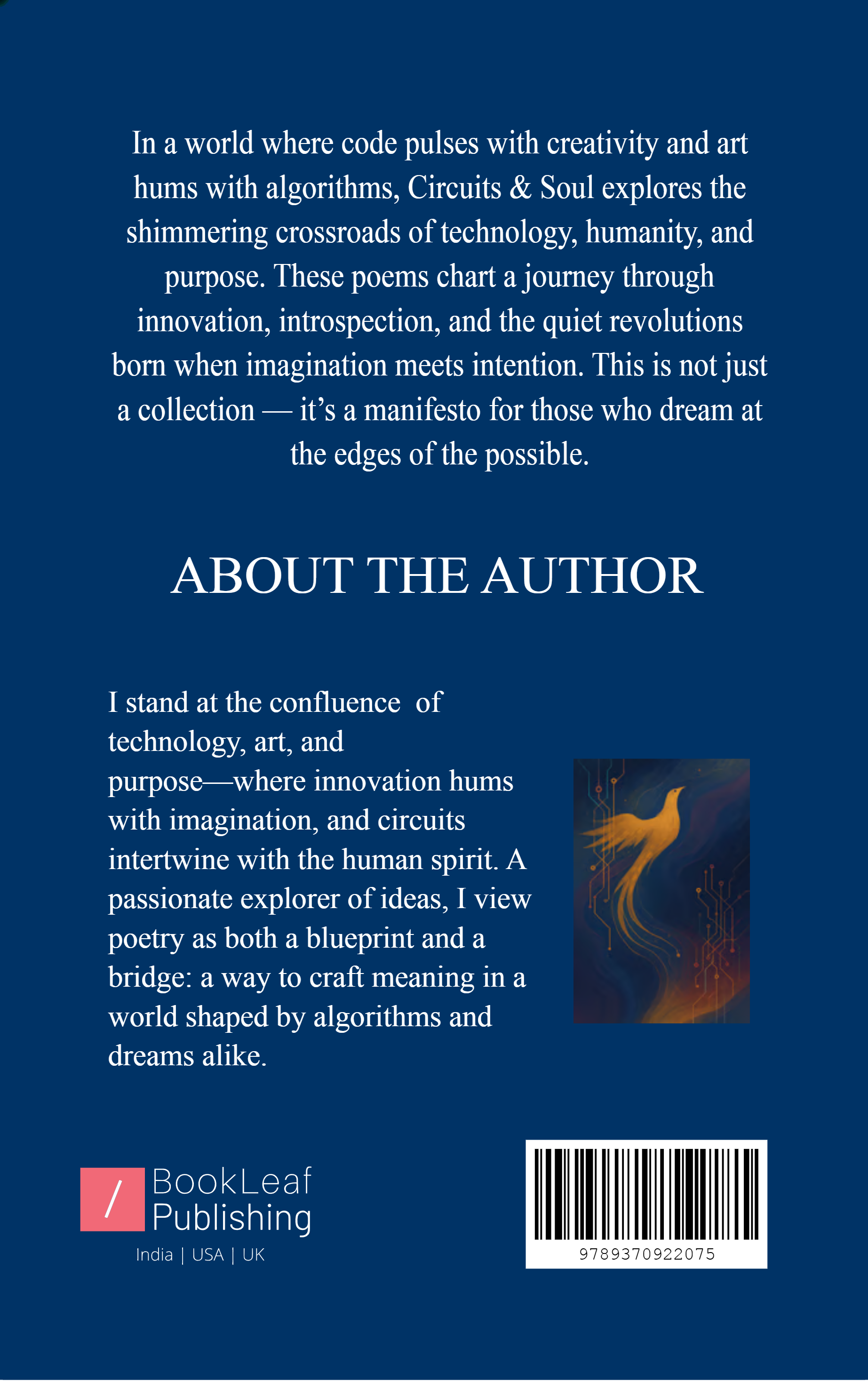 Within a milieu where digital constructs resonate with creative energy and artistic endeavors are imbued with algorithmic precision, Circuits & Soul embarks on an exploration of the luminous confluence of technology, human experience, and purposeful action. These poems chart a course through innovation and introspection, illuminating the subtle yet significant transformations where imaginative vision converges with deliberate intention. More than a mere compilation, this collection is a compelling manifesto for those who envision possibilities at the frontiers of the conceivable.