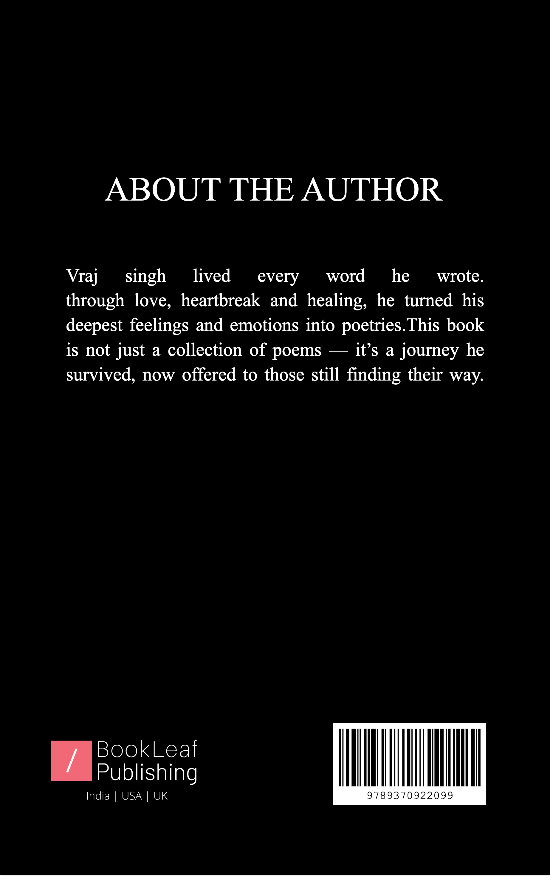 This book is for them who lived in the pain of separation, betrayel, self doubts and realizations.