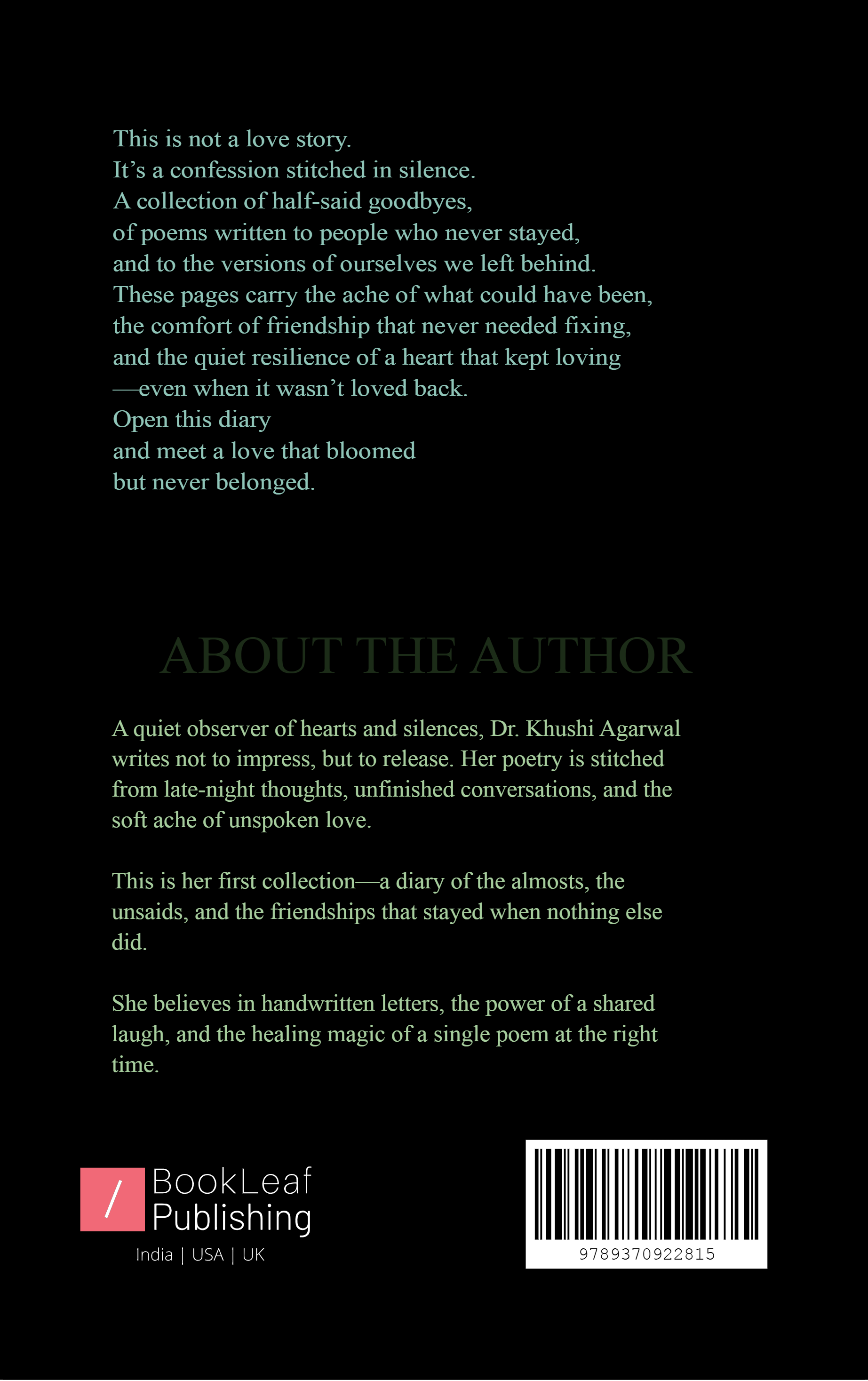 Diary of a Love That Never Was is a soul-stirring collection of poems exploring love, friendship, heartbreak, and the unspoken bonds that shape us. Written in a voice both tender and raw, this bilingual journey captures fleeting moments, lingering emotions, and the quiet resilience of the heart.