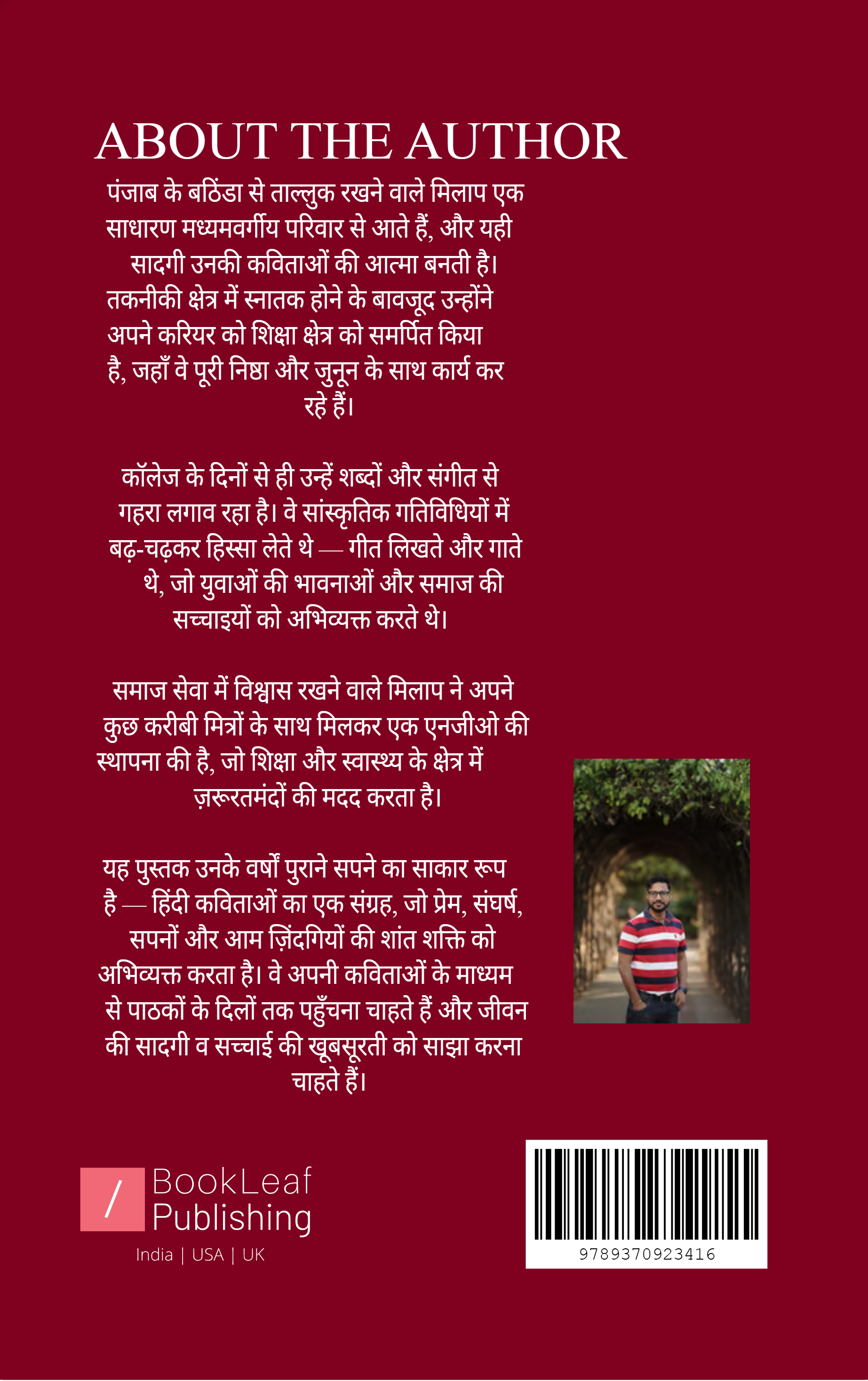 This collection of Hindi poetry takes readers on a heartfelt journey through the emotions, struggles, and simple moments that define everyday life. Each poem reflects themes of love, hope, introspection, and the unspoken strength found in ordinary people. This book is not just a compilation of poems, but a piece of soul woven into every verse. offering a voice to feelings