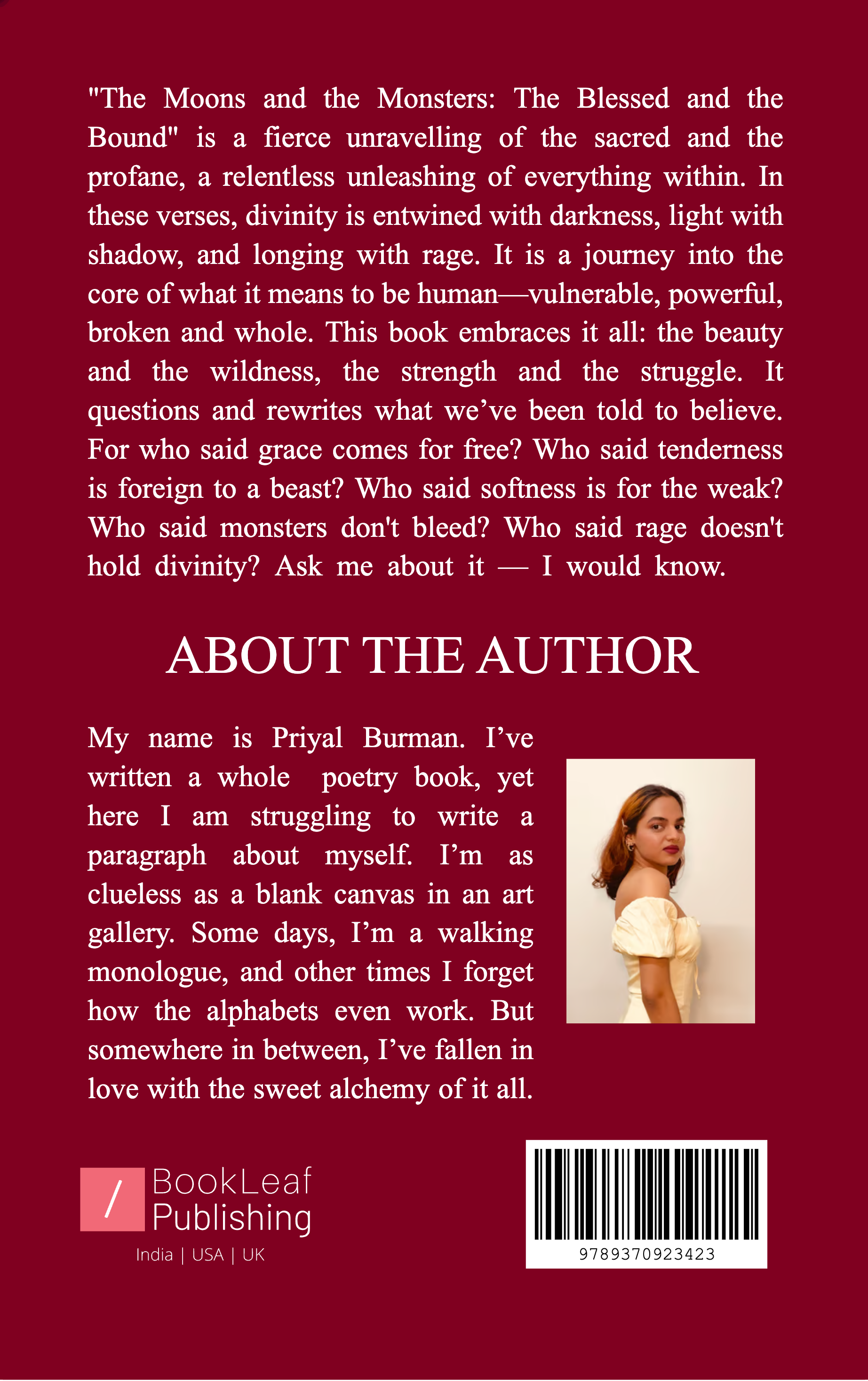 “A fierce unravelling of the sacred and the profane, a relentless unleashing of everything within. In these verses, divinity is entwined with darkness, light with shadow, and longing with rage. It is a journey into the core of what it means to be human—vulnerable, powerful, broken, and whole; with all the beauty and the wildness, the strength and the struggle.