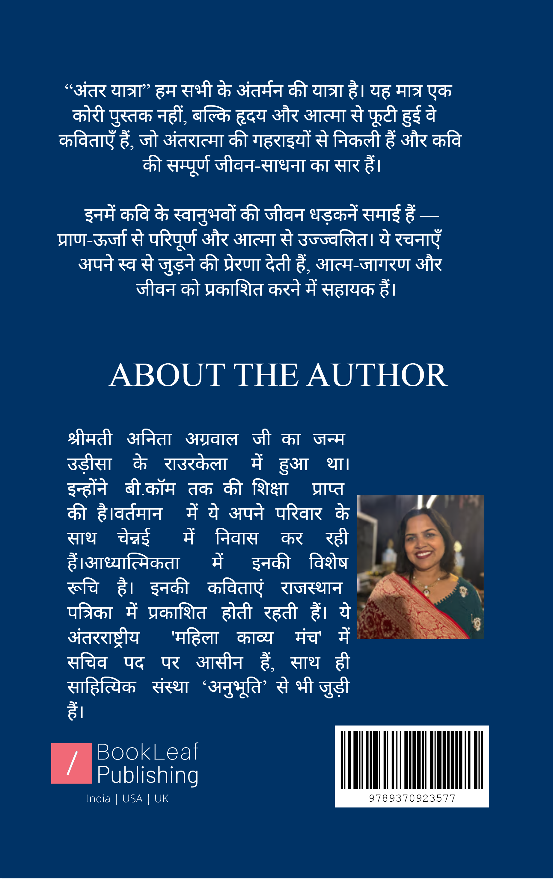 “अंतर यात्रा” हम सभी के अंतर्मन की यात्रा है। यह मात्र एक कोरी पुस्तक नहीं, बल्कि हृदय और आत्मा से फूटी हुई वे कविताएँ हैं, जो अंतरात्मा की गहराइयों से निकली हैं और कवि की सम्पूर्ण जीवन-साधना का सार हैं।