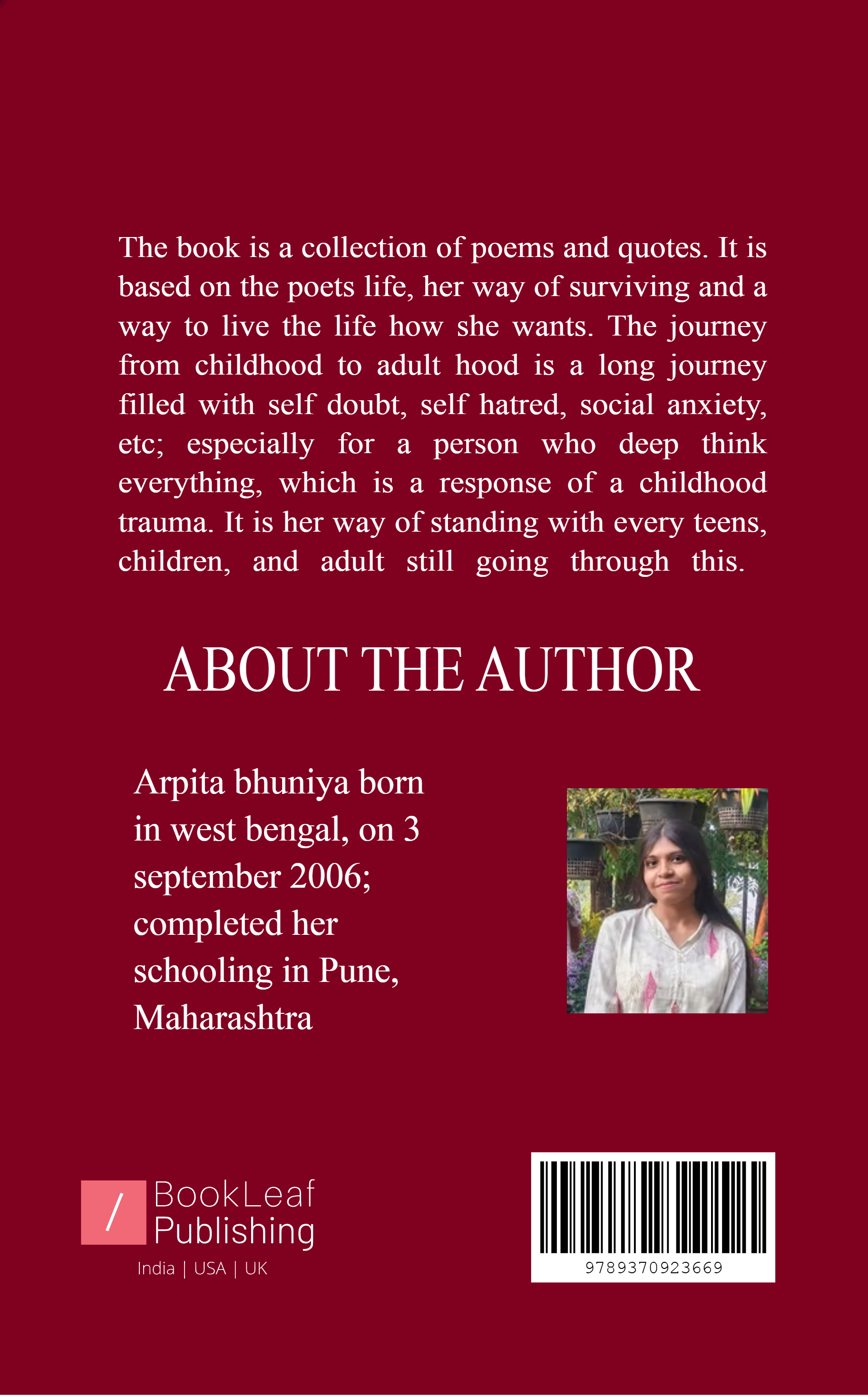 The book is a collection of poems and quotes. It is based on the poets life, her way of surviving and a way to live the life how she wants. The journey from childhood to adult hood is a long journey filled with self doubt, self hatred, social anxiety, etc; especially for a person who deep think everything, which is a response of a childhood trauma. It is her way of standing with every teens, children, and adult still going through this.