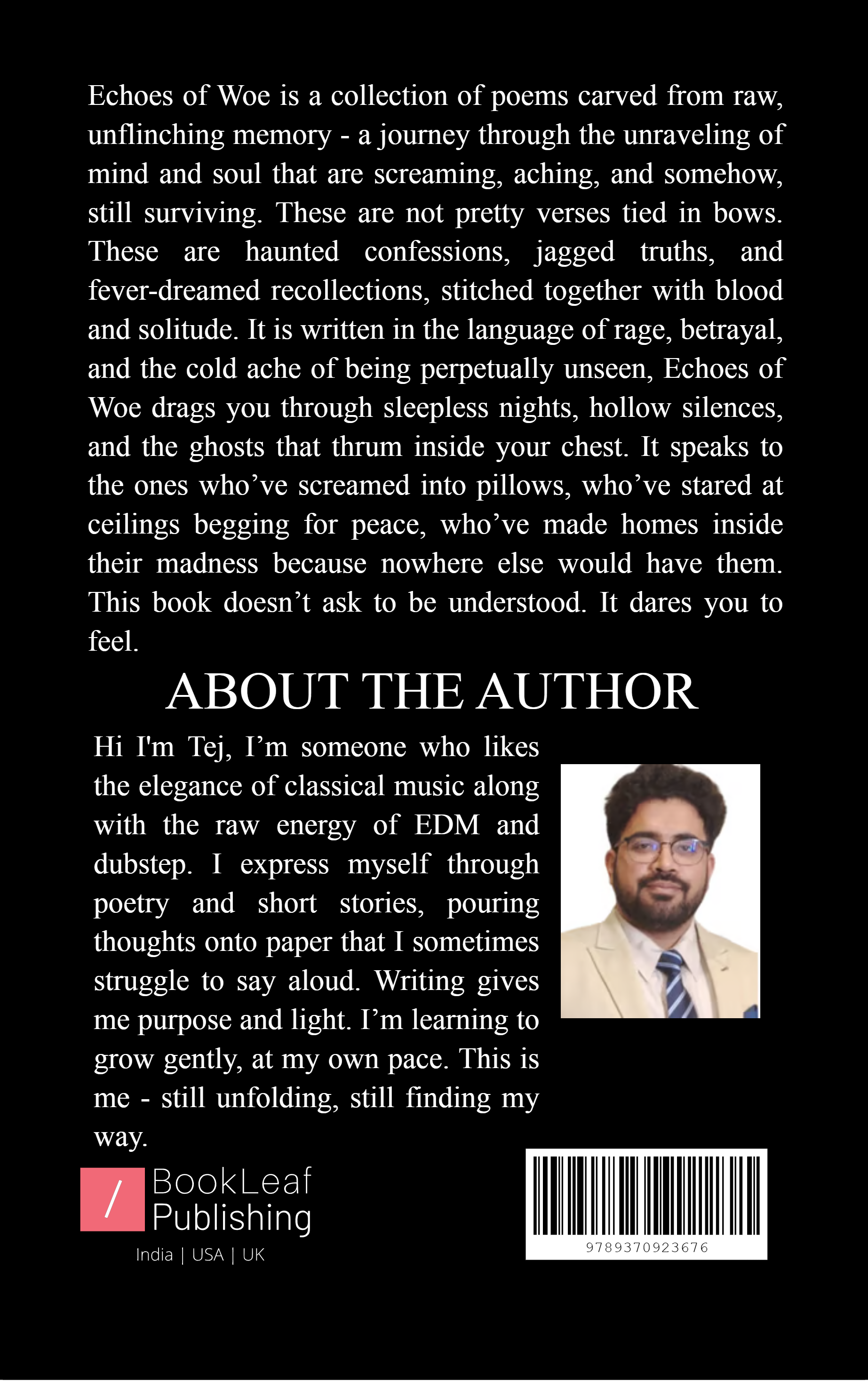 Echoes of Woe is a visceral collection of poetry born from sleepless nights, haunted thoughts, and the quiet agony of being unseen. Each piece is a raw confession - unpolished, unfiltered, and unforgiving. Through rage, betrayal, loneliness, and madness, these poems trace the journey of a soul breaking and rebuilding itself in the dark. This is not a book of comfort; it’s a mirror for the misfit, the broken, the silenced. For those who’ve made homes in pain and found strength in solitude. Echoes of Woe doesn’t offer healing - it offers truth, and dares you to feel every fractured part of it.