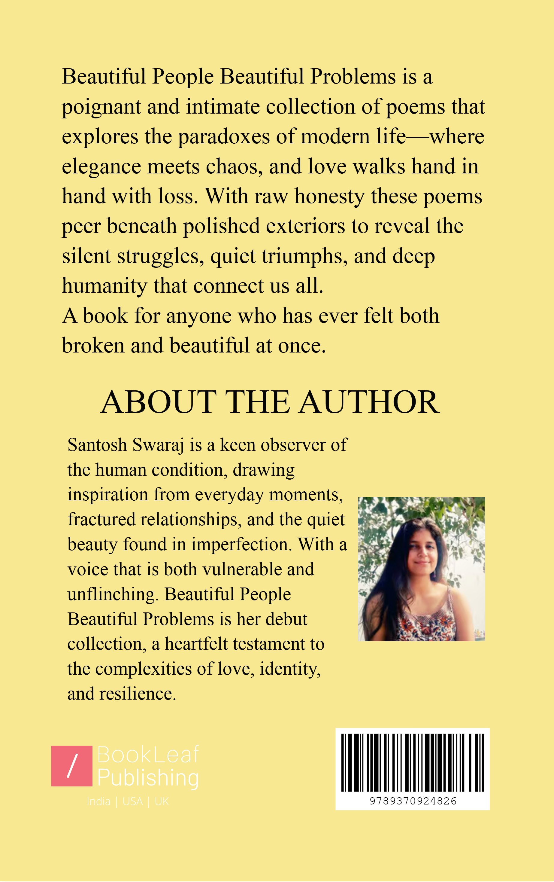 "Beautiful People Beautiful Problems" is a poignant and intimate collection of poems that explores the paradoxes of modern life—where elegance meets chaos, and love walks hand in hand with loss. With raw honesty and lyrical grace, these poems peer beneath polished exteriors to reveal the silent struggles, quiet triumphs, and deep humanity that connect us all. A book for anyone who has ever felt both broken and beautiful at once.