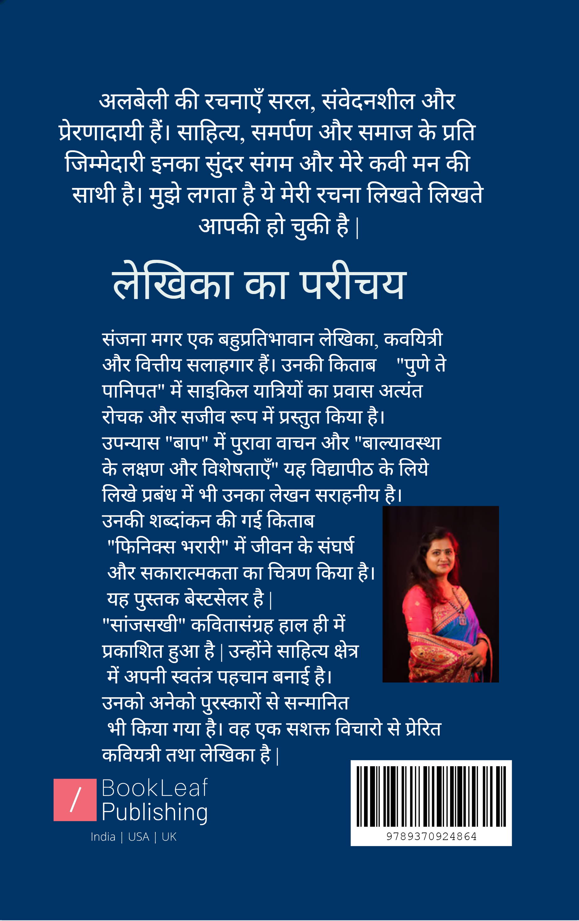 लब्जों की अलबेली कहाणी | अलबेली की रचनाएँ सरल, संवेदनशील और प्रेरणादायी हैं। साहित्य, समर्पण और समाज के प्रति जिम्मेदारी इनका सुंदर संगम इन रचनाओं में है | कवियत्री की मन की ये साथी है।