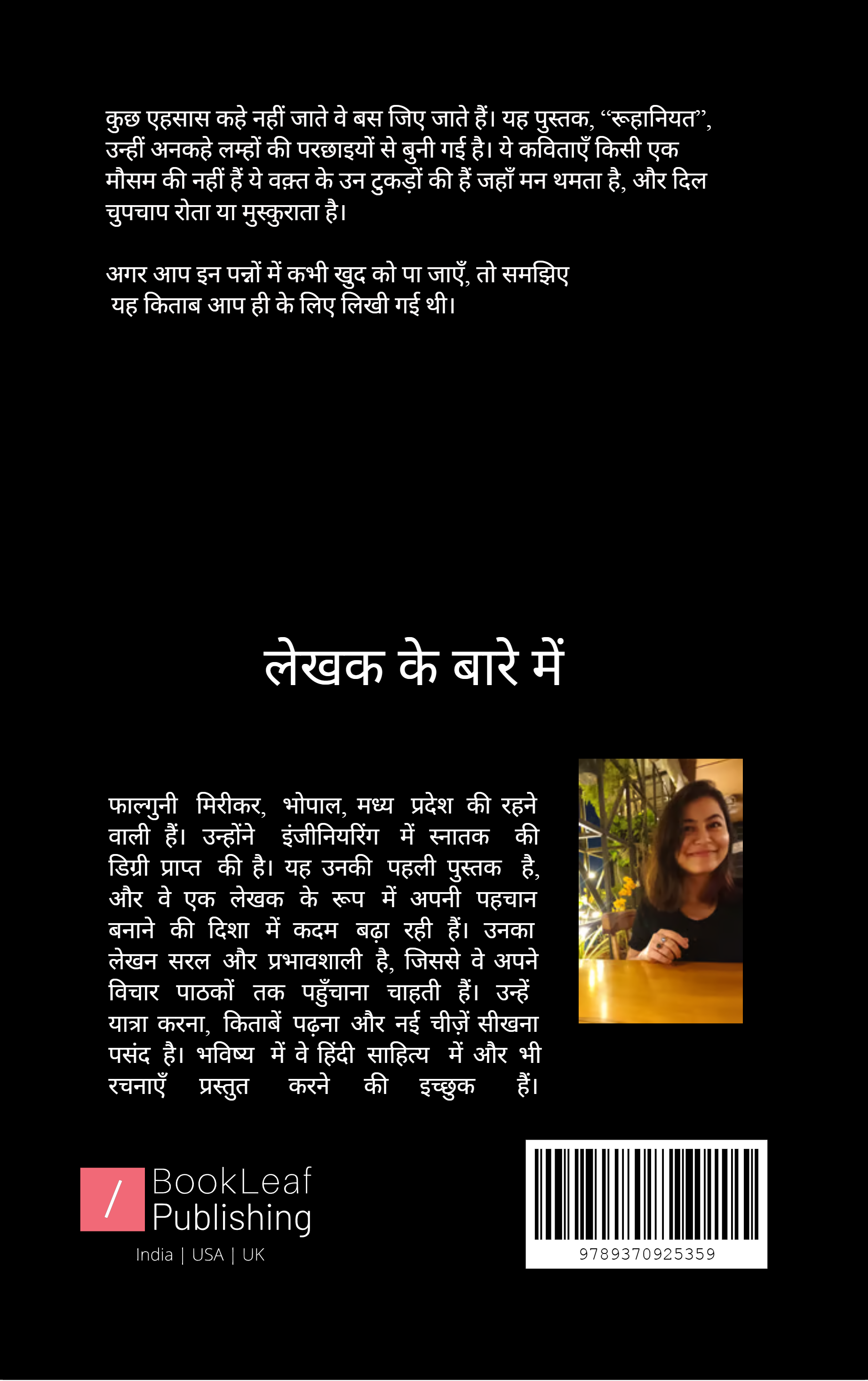 कुछ एहसास कहे नहीं जाते वे बस जिए जाते हैं। यह पुस्तक, “रूहानियत”, उन्हीं अनकहे लम्हों की परछाइयों से बुनी गई है। ये कविताएँ किसी एक मौसम की नहीं हैं ये वक़्त के उन टुकड़ों की हैं जहाँ मन थमता है, और दिल चुपचाप रोता या मुस्कुराता है। अगर आप इन पन्नों में कभी खुद को पा जाएँ, तो समझिए यह किताब आप ही के लिए लिखी गई थी।