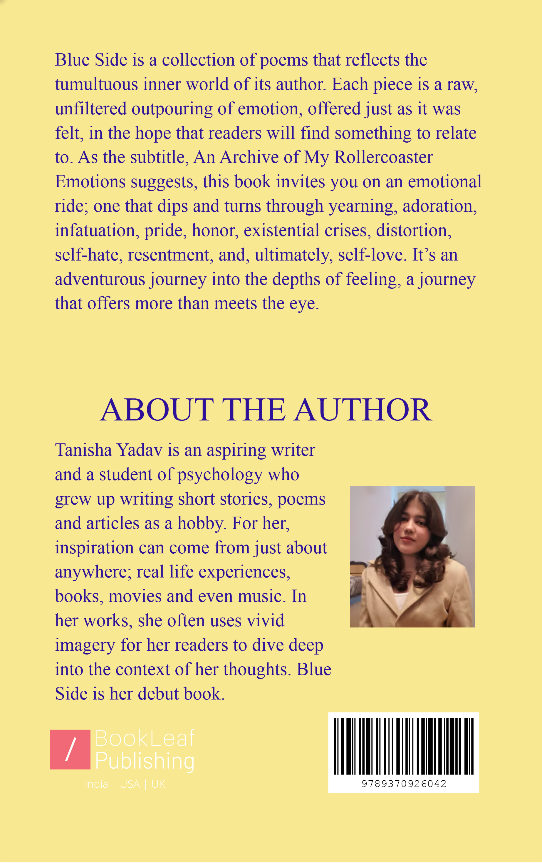 Blue Side is a collection of poems that reflects the tumultuous inner world of its author. Each piece is a raw, unfiltered outpouring of emotion, offered just as it was felt, in the hope that readers will find something to relate to. As the subtitle, An Archive of My Rollercoaster Emotions suggests, this book invites you on an emotional ride; one that dips and turns through yearning, adoration, infatuation, pride, honor, existential crises, distortion, self-hate, resentment, and, ultimately, self-love. It’s an adventurous journey into the depths of feeling, a journey that offers more than meets the eye.