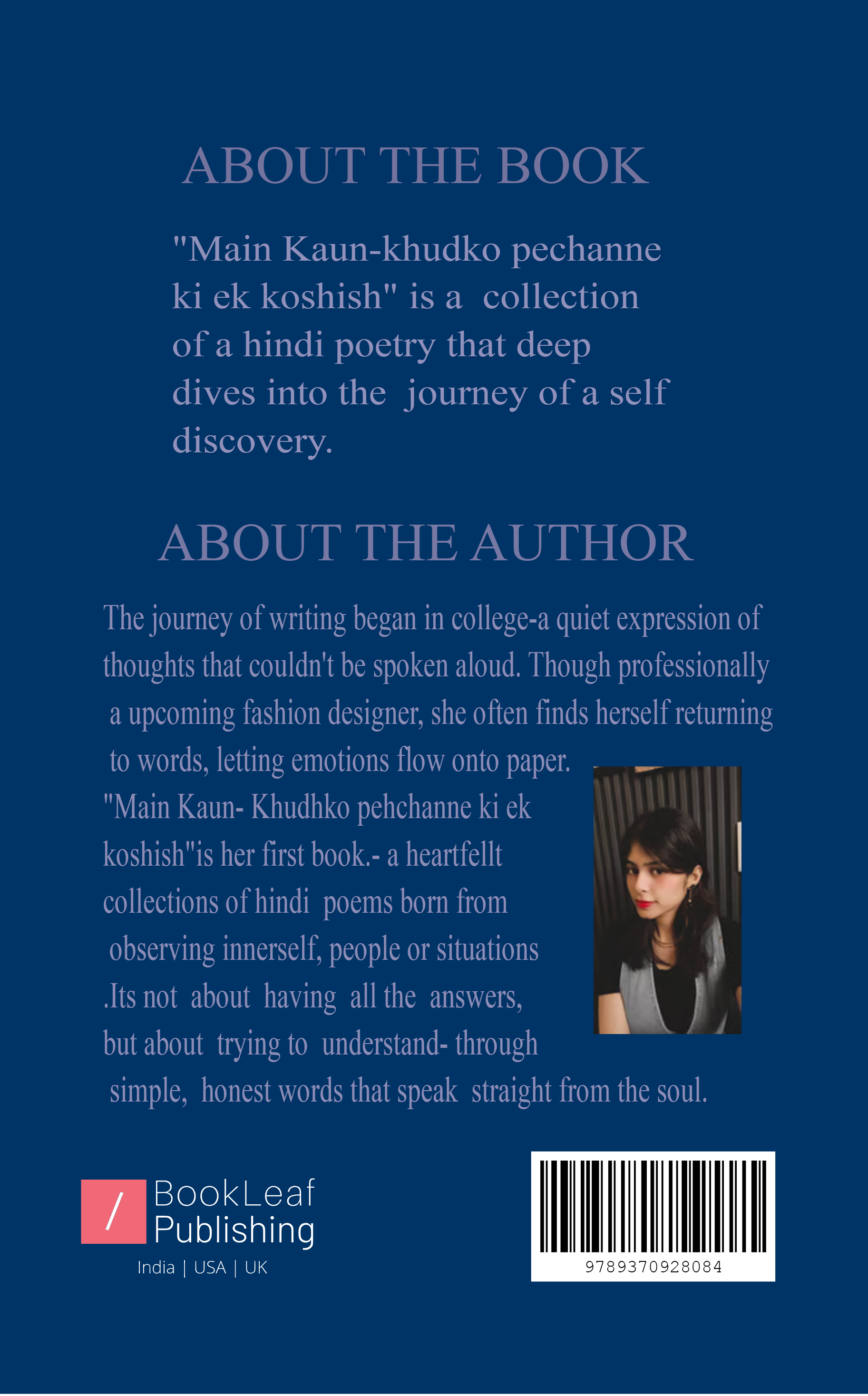 "मैं कौन" -खुद को पहचानने की कोशिश is a soul-stirring collection of poetry written in Hindi that dives deep into the journey of self-discovery. Through raw emotions, intimate reflections, and profound questions, the author unravels the layers of identity, pain, love, and healing. Each poem echoes the silent struggles we often carry within, encouraging the reader to pause and ask—"Who am I, really?"