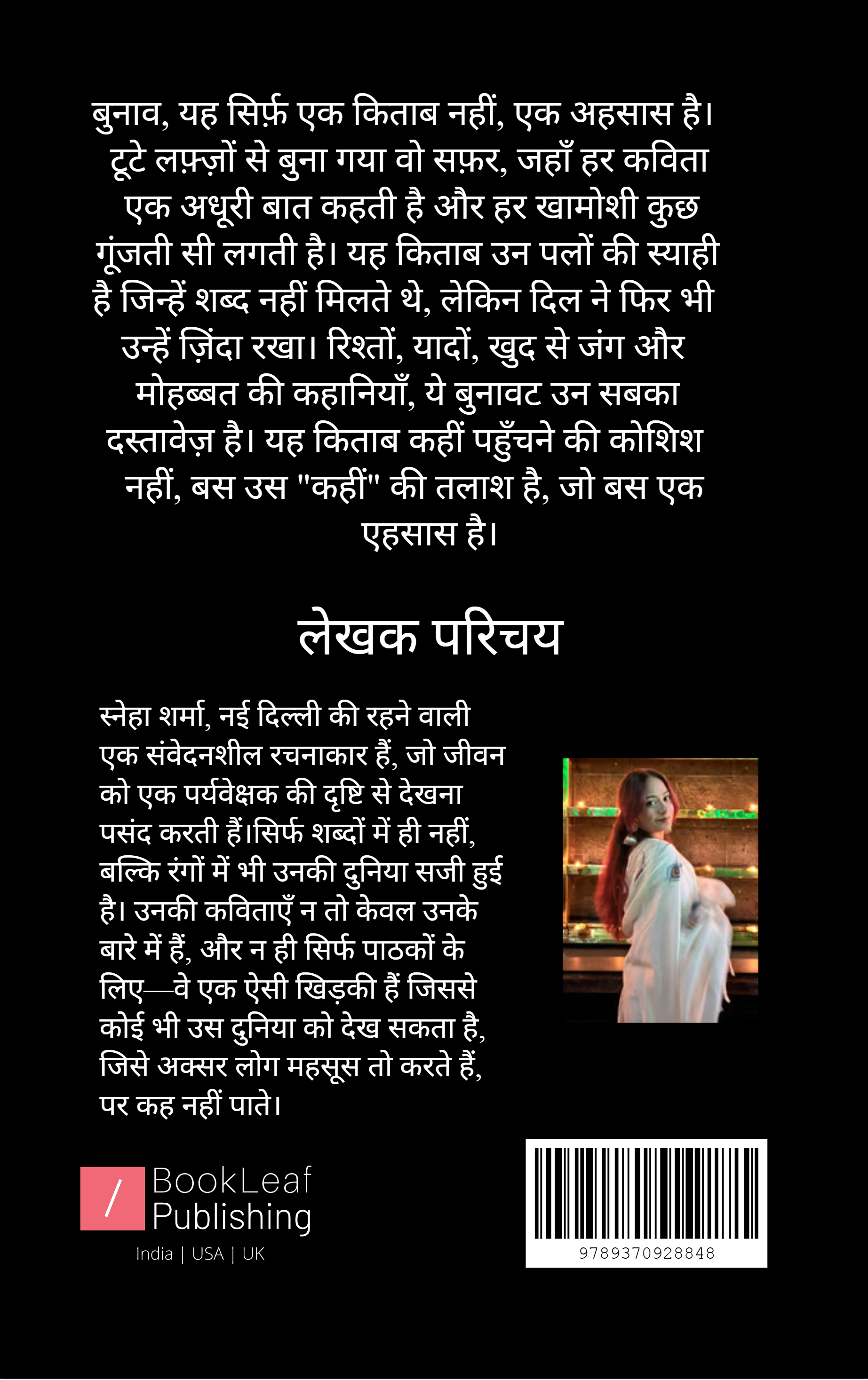 Bunav is a heartfelt collection of poems woven from love, heartbreak, fleeting memories, and quiet observations. Each poem captures emotions that once lingered silently in the corners of the heart. With no fixed structure or theme, this book is a journey, sometimes deeply personal, sometimes universally felt. It invites readers to pause, reflect, and perhaps find a piece of themselves hidden between the lines. Bunav doesn’t offer answers, it simply holds space for emotions we often leave unspoken.