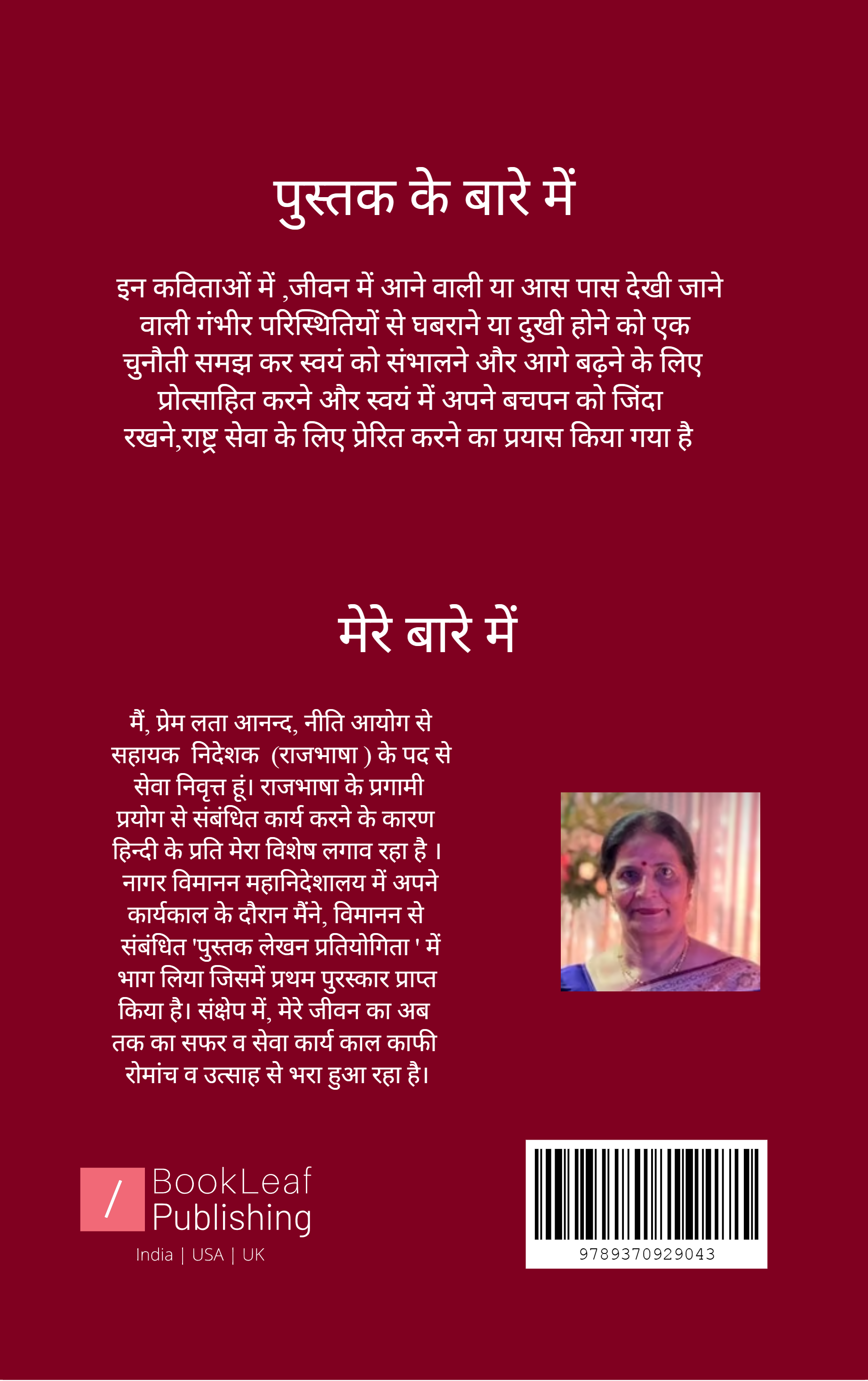 इन कविताओं में, जीवन में आने वाली या आस पास देखी जाने वाली गंभीर परिस्थितियों से घबराने या दुखी होने को एक चुनौती समझ कर स्वयं को संभालने और आगे बढ़ने के लिए प्रोत्साहित करने और स्वयं में अपने बचपन को जिंदा रखने, राष्ट्र सेवा के लिए प्रेरित करने का प्रयास किया गया है |