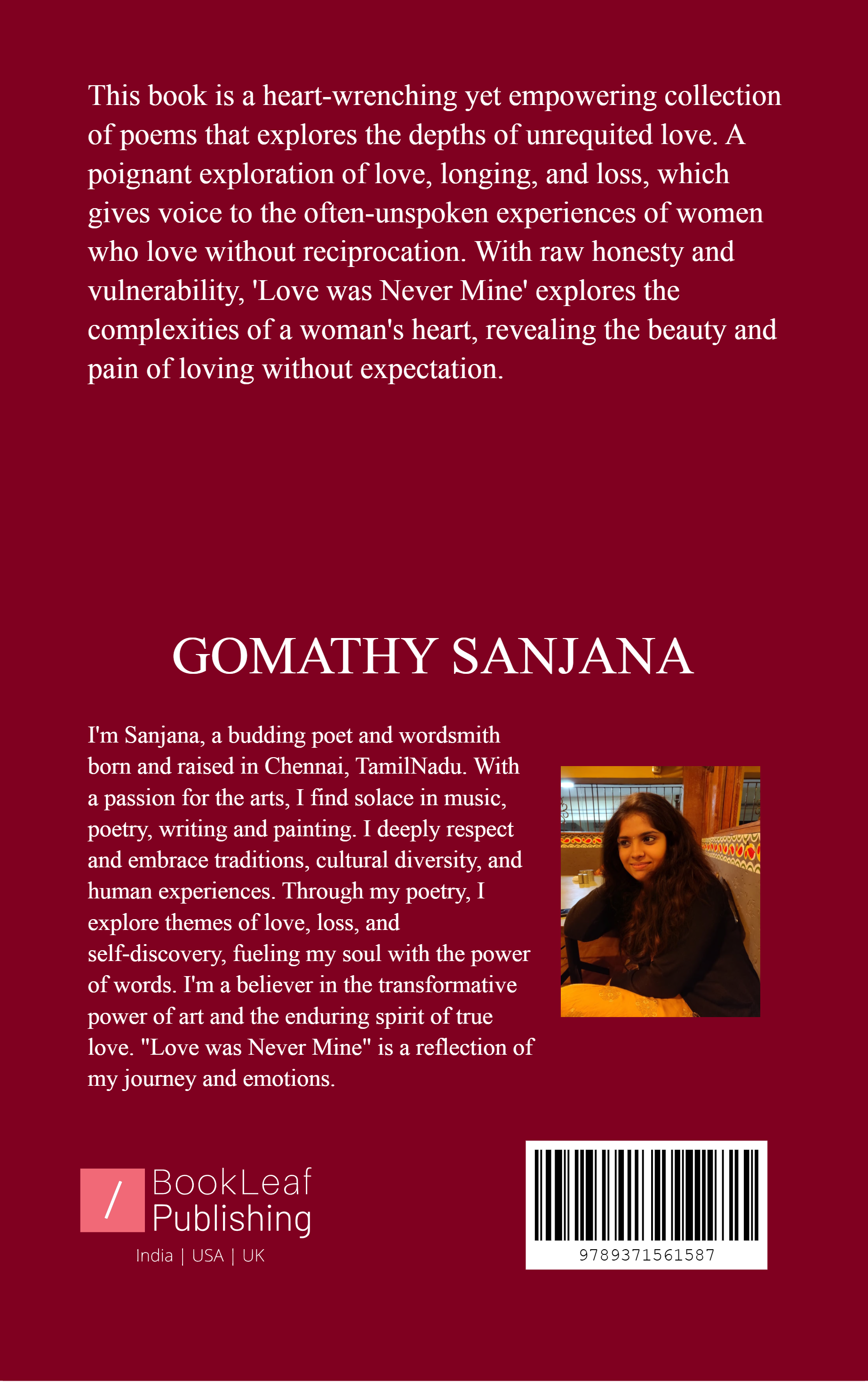 This book is a heart-wrenching yet empowering collection of poems that explores the depths of unrequited love. A poignant exploration of love, longing, and loss, which gives voice to the often-unspoken experiences of women who love without reciprocation. With raw honesty and vulnerability, 'Love was Never Mine' explores the complexities of a woman's heart, revealing the beauty and pain of loving without expectation.