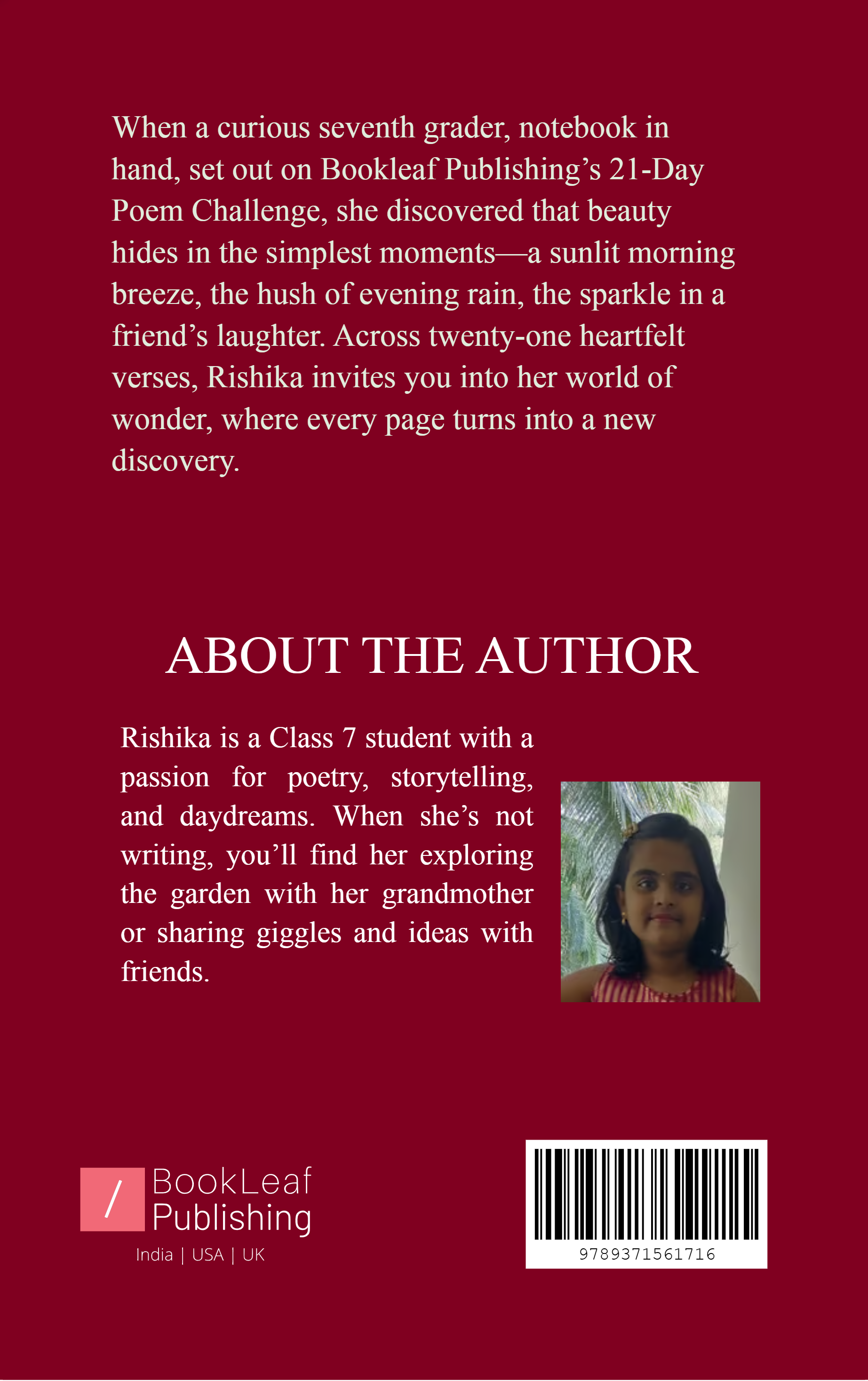 Across twenty-one heartfelt verses, Rishika invites you into her world of wonder, where every line becomes a new discovery.