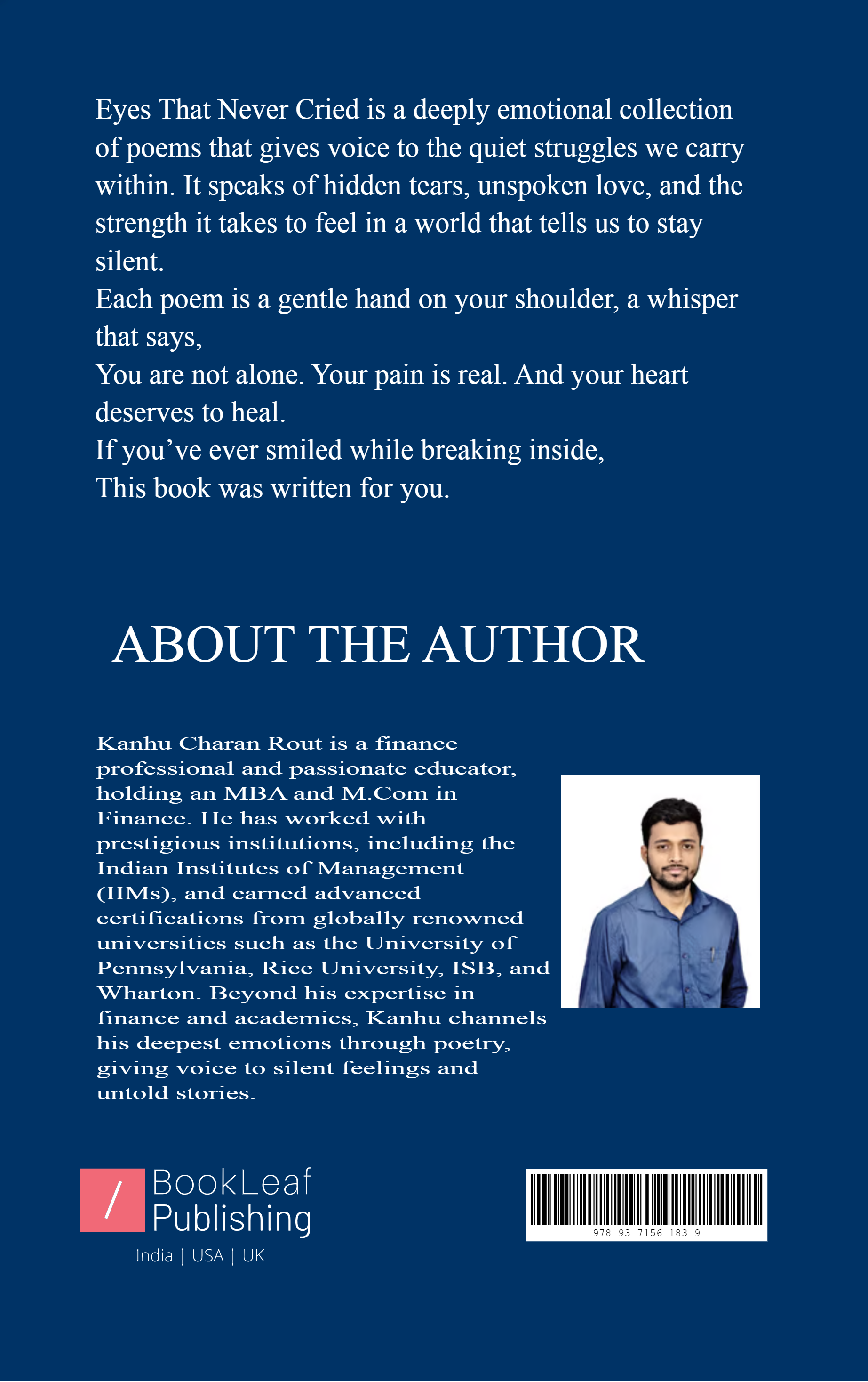 Eyes That Never Cried is a deeply emotional collection of poems that gives voice to the quiet struggles we carry within. It speaks of hidden tears, unspoken love, and the strength it takes to feel in a world that tells us to stay silent.