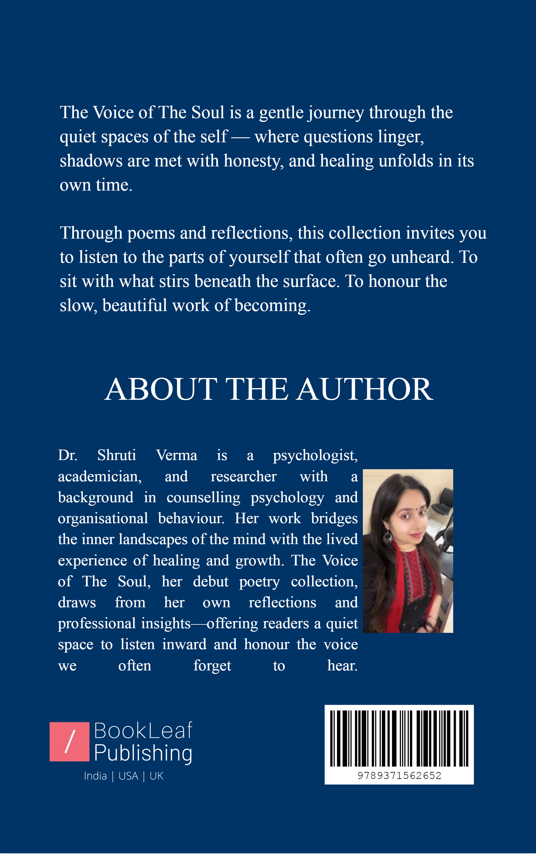 The Voice of The Soul is a gentle journey through inner conversations—where questions linger, shadows soften, and healing unfolds quietly. Written by psychologist and academician Dr. Shruti Verma, this debut poetry collection invites you to pause, reflect, and listen to the voice within. Through honest verses and soulful reflections, the book offers a space to embrace the unseen parts of yourself and the slow, beautiful process of becoming.