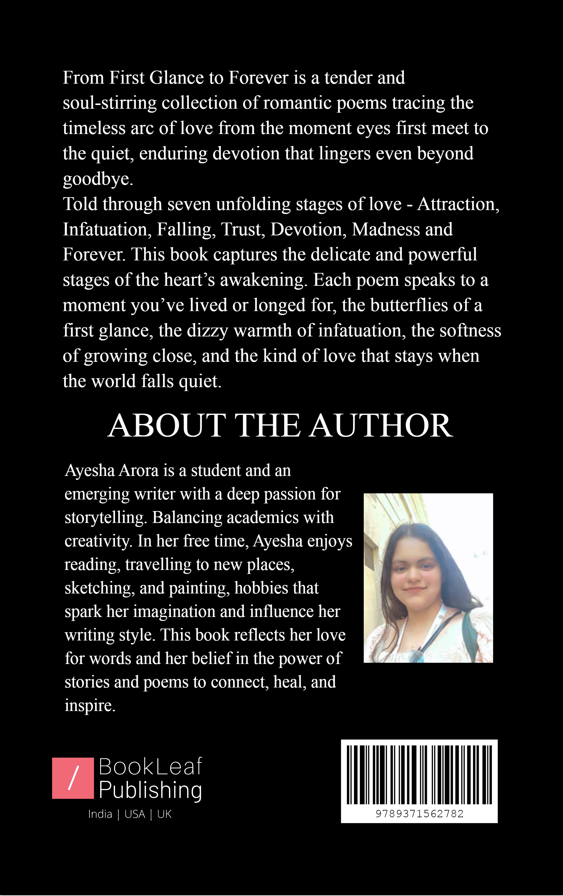 From First Glance to Forever is a tender and soul-stirring collection of romantic poems tracing the timeless arc of love from the moment eyes first meet to the quiet, enduring devotion that lingers even beyond goodbye.