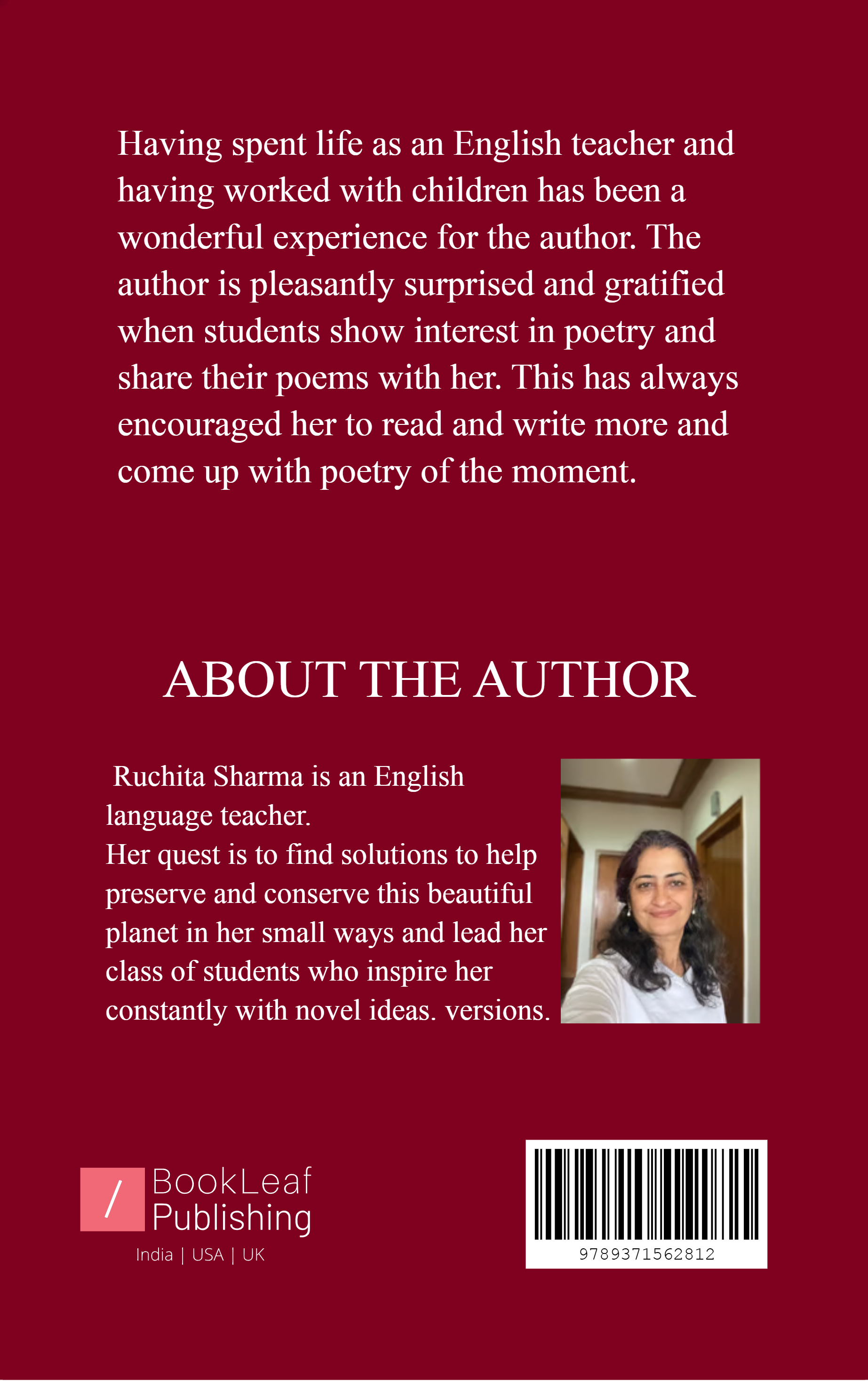 Having spent life as an English teacher and having worked with children has been a wonderful experience for the author. The author is pleasantly surprised and gratified when students show interest in poetry and share their poems with her. This has always encouraged her to read and write more and come up with poetry of the moment.