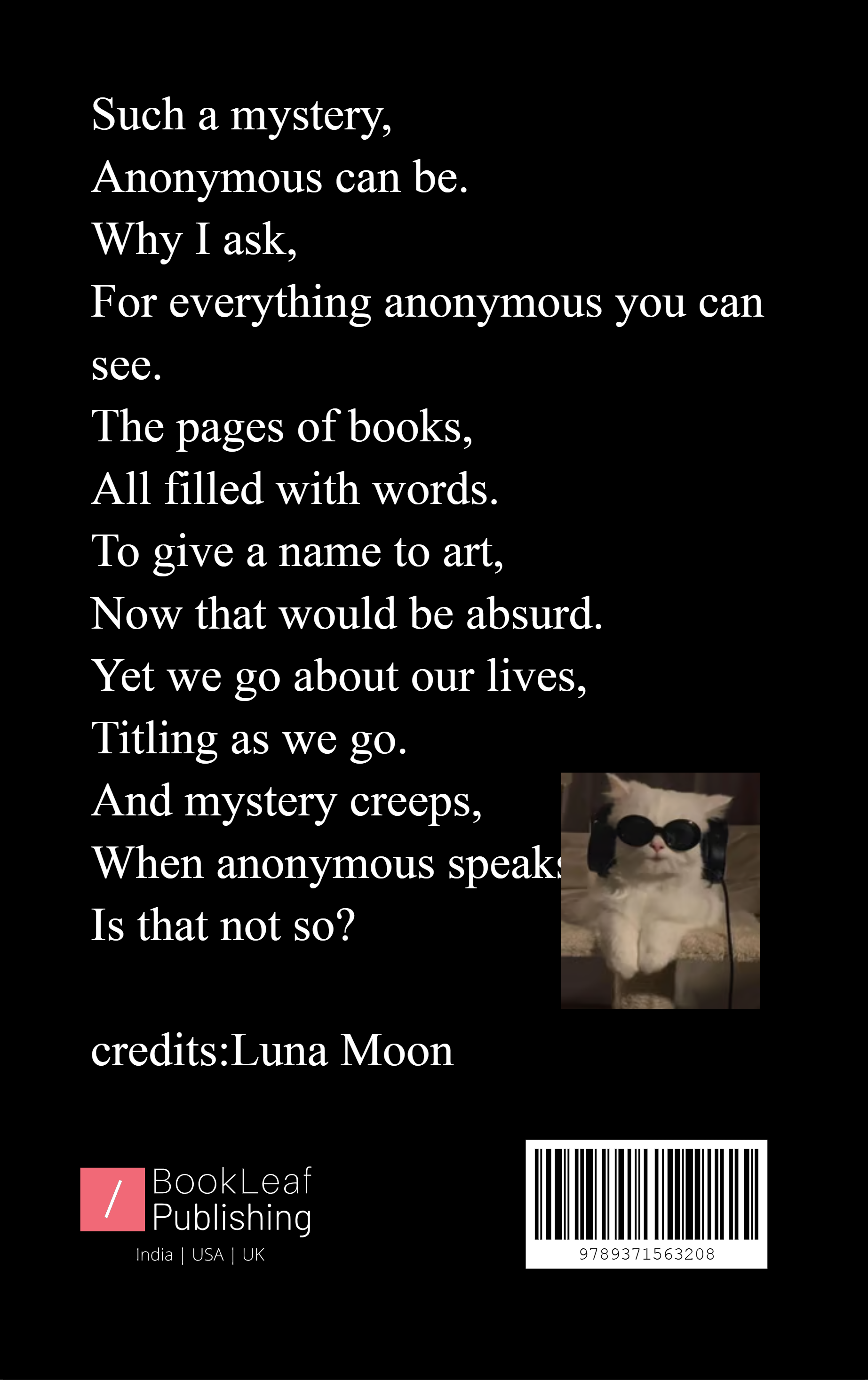 This book includes journey of few rough seasons of my life the realization and the wisdom life taught me about tbh, i wanted to end my meaningless life then i started writing poetry and it felt like there was more than just construct to life it had deeper meaning.More like its a game it just want players not NPCs.