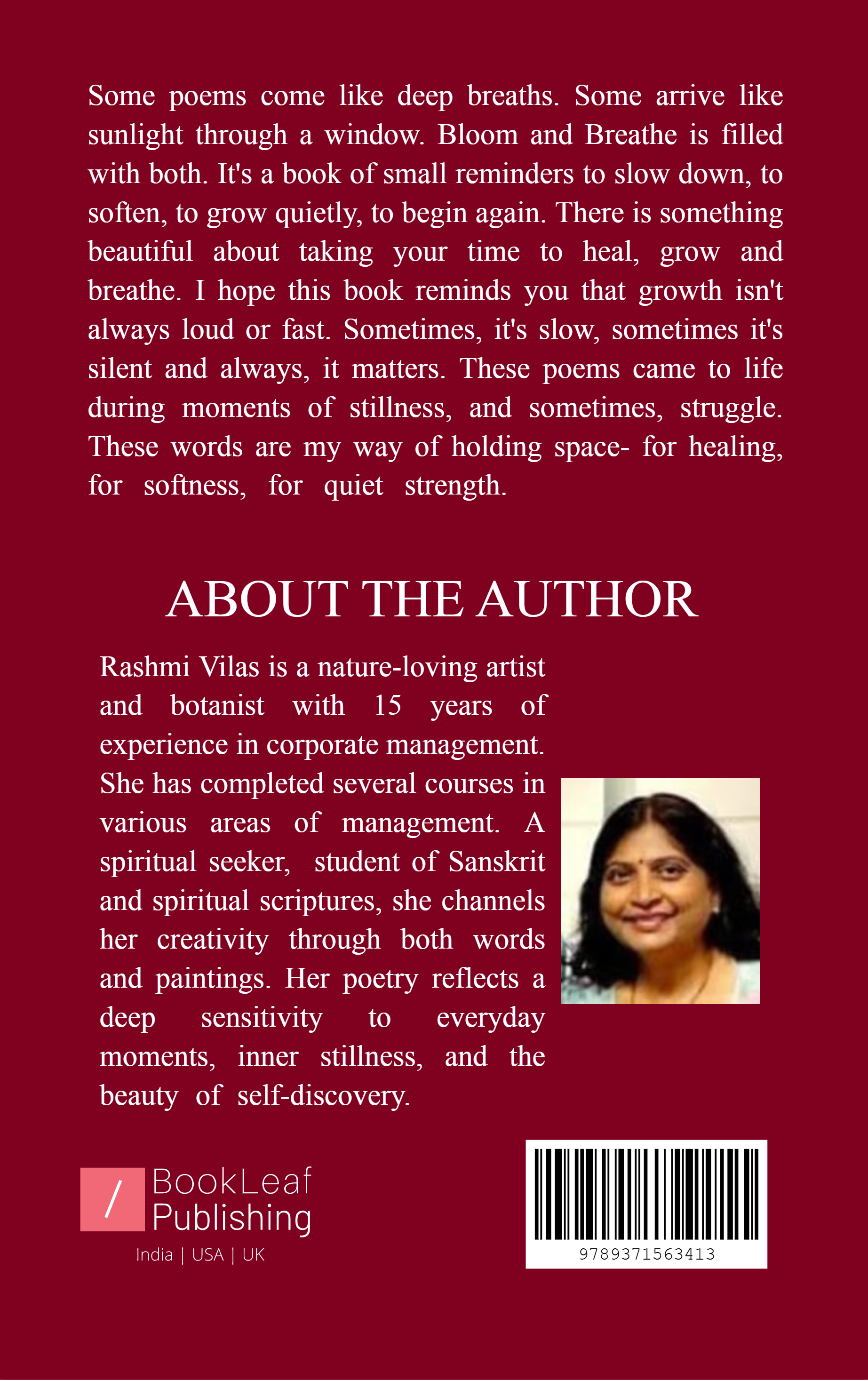 There is something beautiful about taking your time to heal, grow and breathe. I hope this book reminds you that growth isn't always loud or fast. Sometimes, it's slow, sometimes it's silent and always, it matters. These poems came to life during moments of stillness, and sometimes, struggle. These words are my way of holding space- for healing, for softness, for quiet strength.