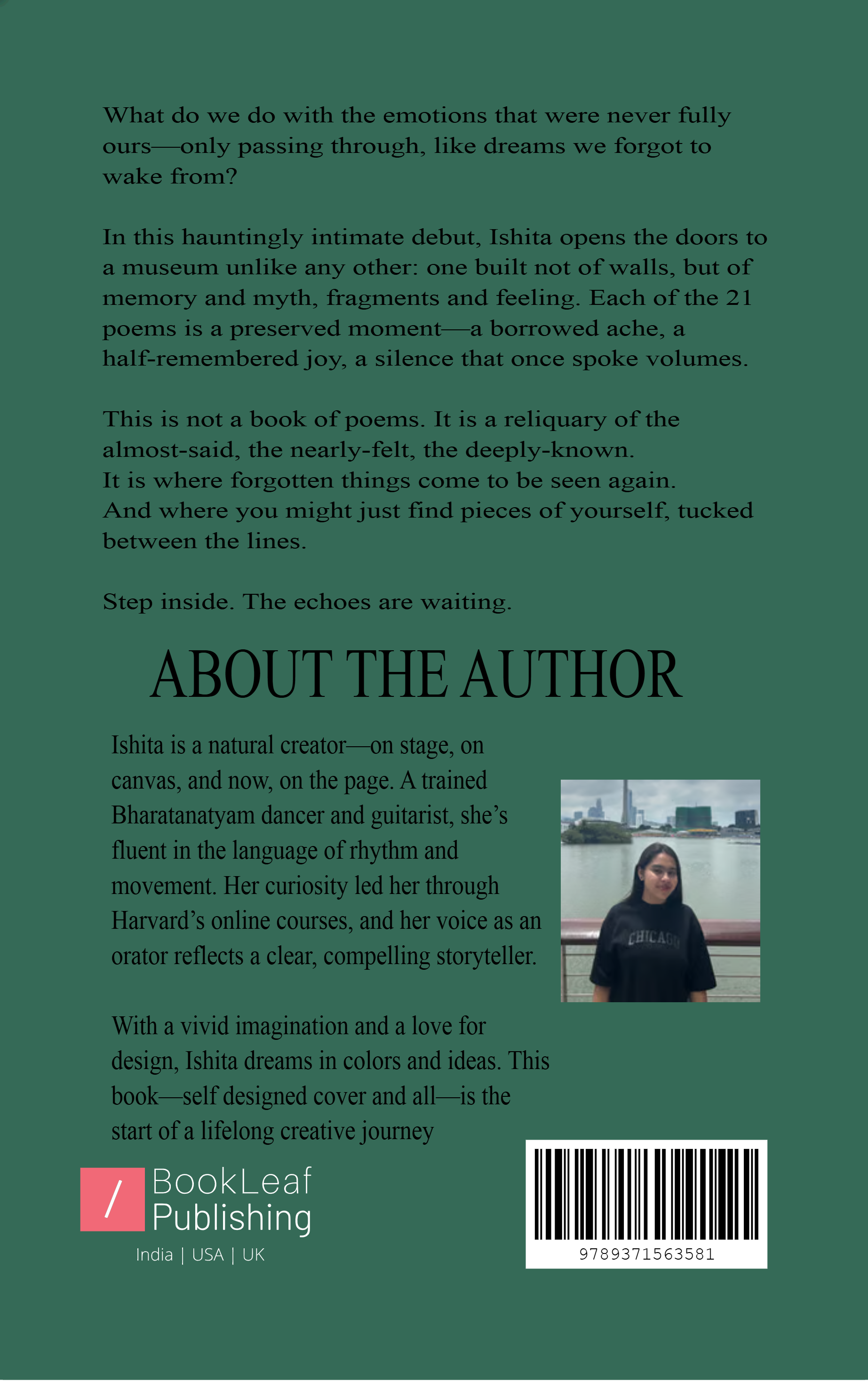 In this hauntingly intimate debut, Ishita opens the doors to a museum unlike any other: one built not of walls, but of memory and myth, fragments and feeling. Each of the 21 poems is a preserved moment—a borrowed ache, a half-remembered joy, a silence that once spoke volumes.