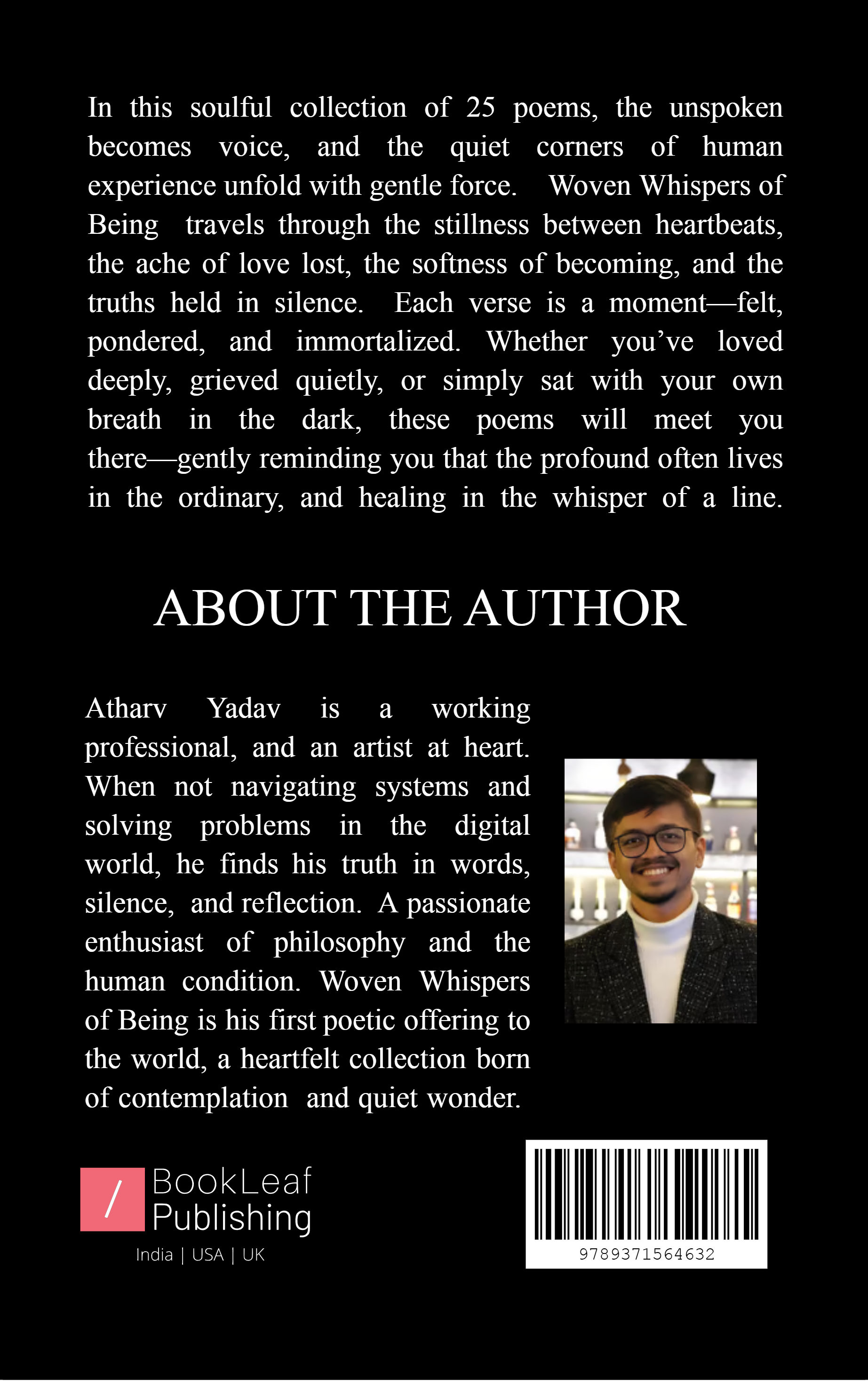 In this soulful collection of 25 poems, the unspoken becomes voice, and the quiet corners of human experience unfold with gentle force. Woven Whispers of Being travels through the stillness between heartbeats, the ache of love lost, the softness of becoming, and the truths held in silence.