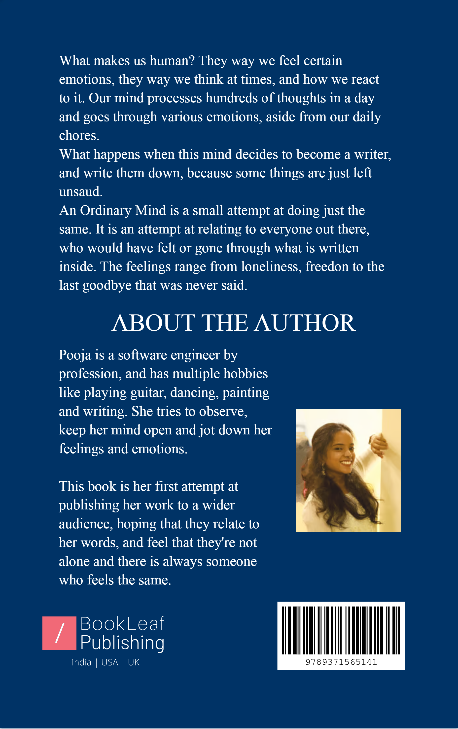 An Ordinary Mind is a small attempt at doing just the same. It is an attempt at relating to everyone out there, who would have felt or gone through what is written inside. The feelings range from loneliness, freedon to the last goodbye that was never said.