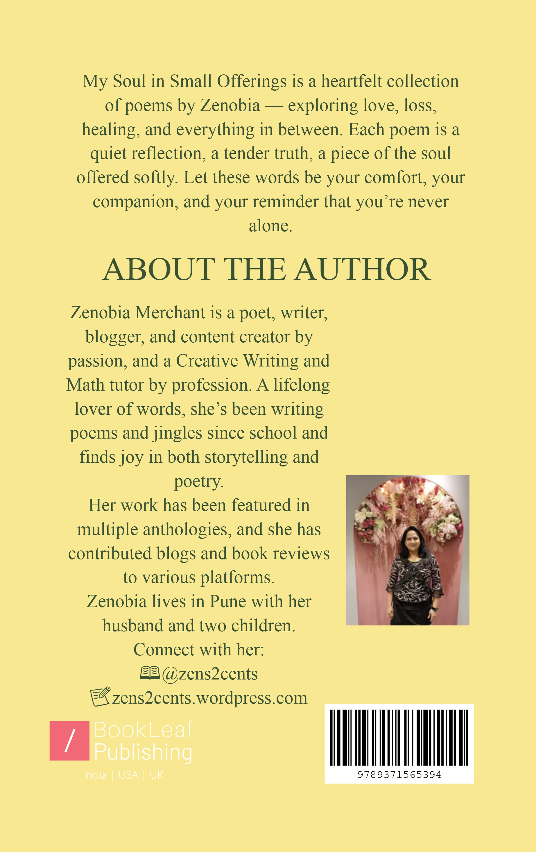 My Soul in Small Offerings is a heartfelt collection of poems by Zenobia — exploring love, loss, healing, and everything in between.