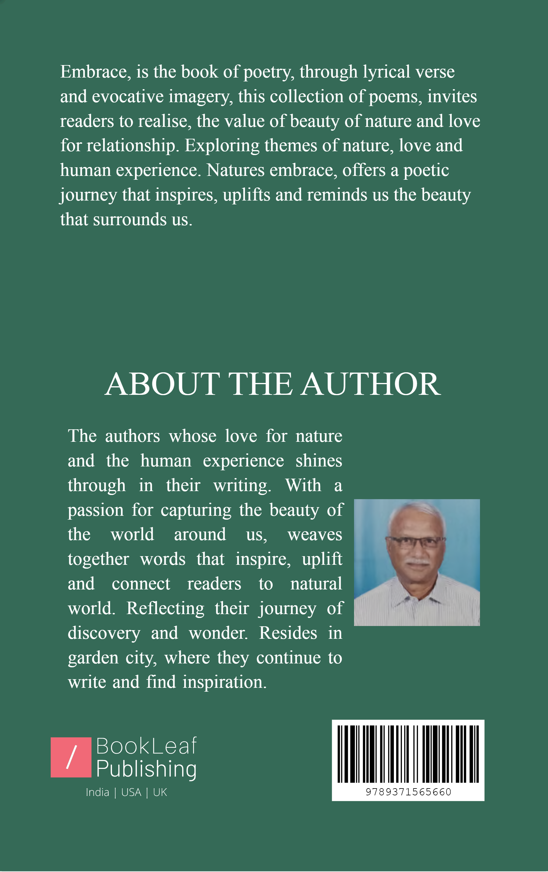 Embrace, is the book of poetry, through lyrical verse and evocative imagery, this collection of poems, invites readers to realise, the value of beauty of nature and love for relationship.