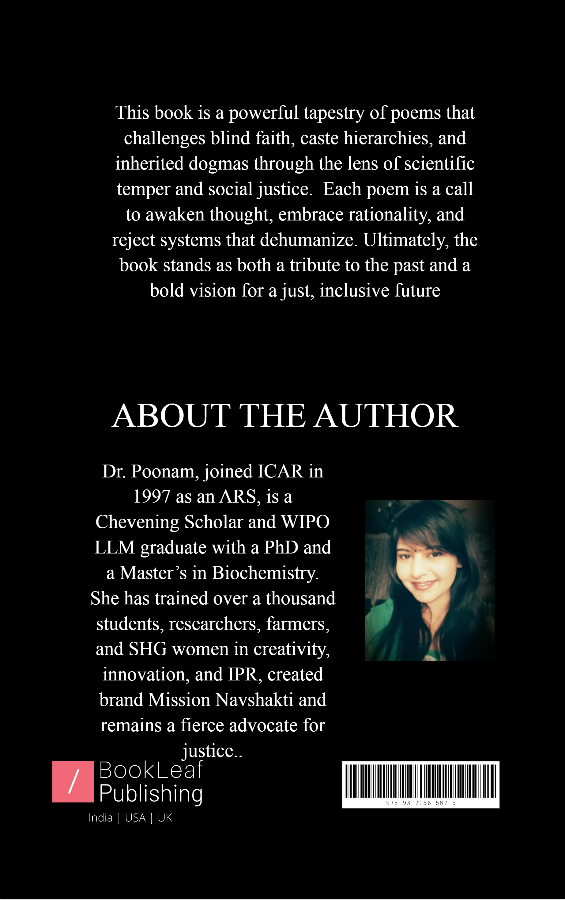 This book is a powerful tapestry of poems that challenges blind faith, caste hierarchies, and inherited dogmas through the lens of scientific temper and social justice. Each poem is a call to awaken thought, embrace rationality, and reject systems that dehumanize. Ultimately, the book stands as both a tribute to the past and a bold vision for a just, inclusive future